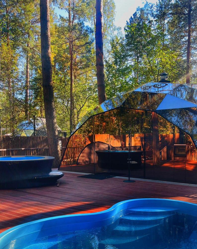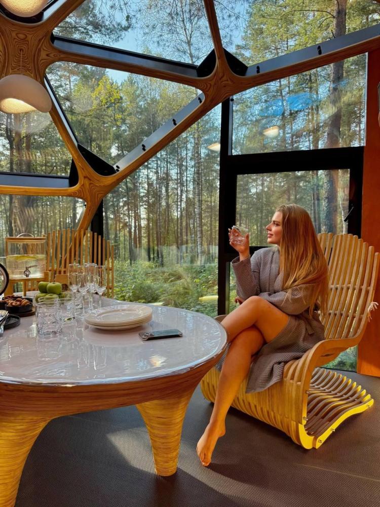 Настоящий сферический дом из стекла и дерева «SFERA 360». Теплые полы по всему дому и стильная печь, создадут комфортное времяпрепровождение в самые сильные морозы, есть мощный кондиционер для сильной жары,продуманная система штор позволит уединиться.