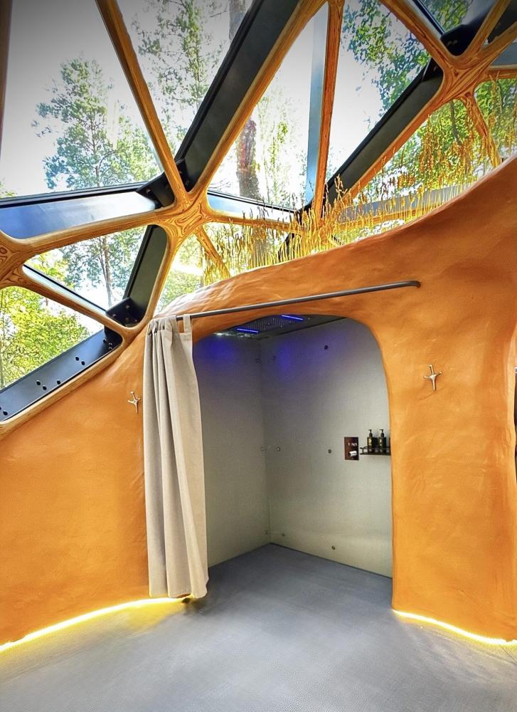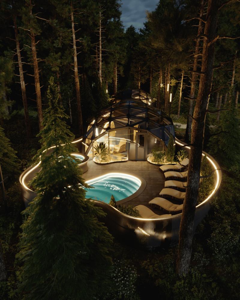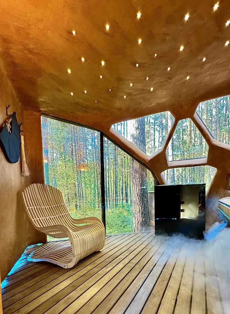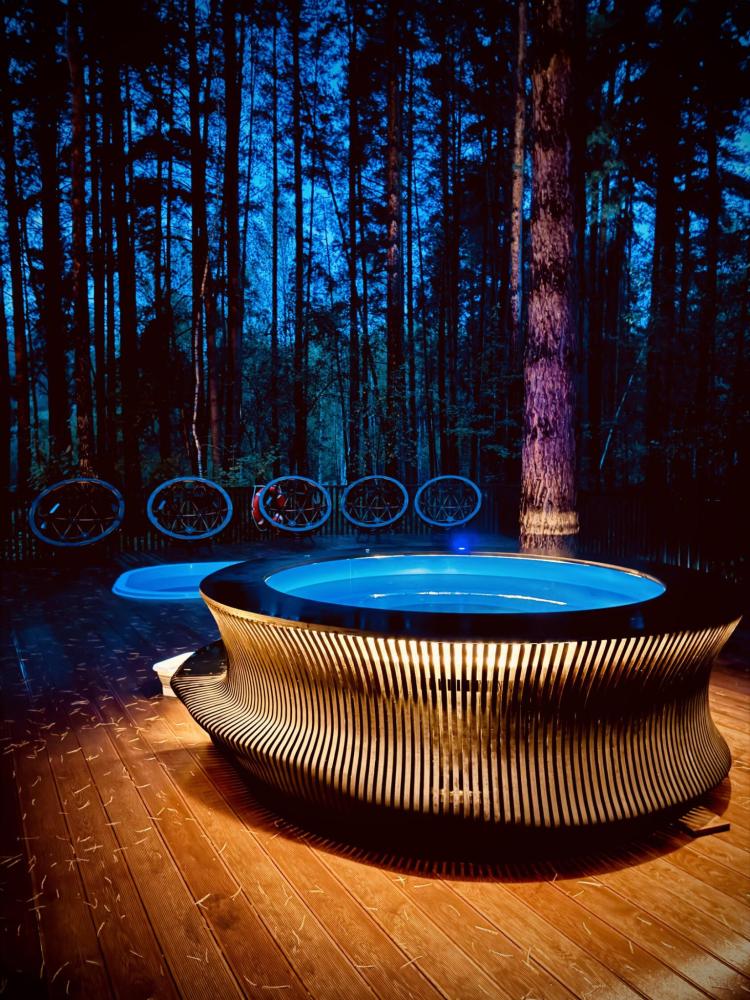 KONUS360 - дом уникальной формы, в стиле геометрического конуса, с высокими 7-ми метровыми потолками, печью-камином и огромной ванной на 500 литров, собсвенной гриль зоной и террасой, что позволяет получить максимум удовольствия от отдыха. Дом имеет большие панорамные окна по всему периметру, для наслаждения приватным реликтовым лесом , окружающей природой, голубым небом, звездами, стекающими каплями дождя и хлопьями снега. Дизайнерский ремонт в стиле хай-тек, подчеркивает величественность и изящность дома. Весь интерьер, мебель и материалы высочайшего класса, подобраны с особым вниманием, для создания максимального релакса и удовольствия.