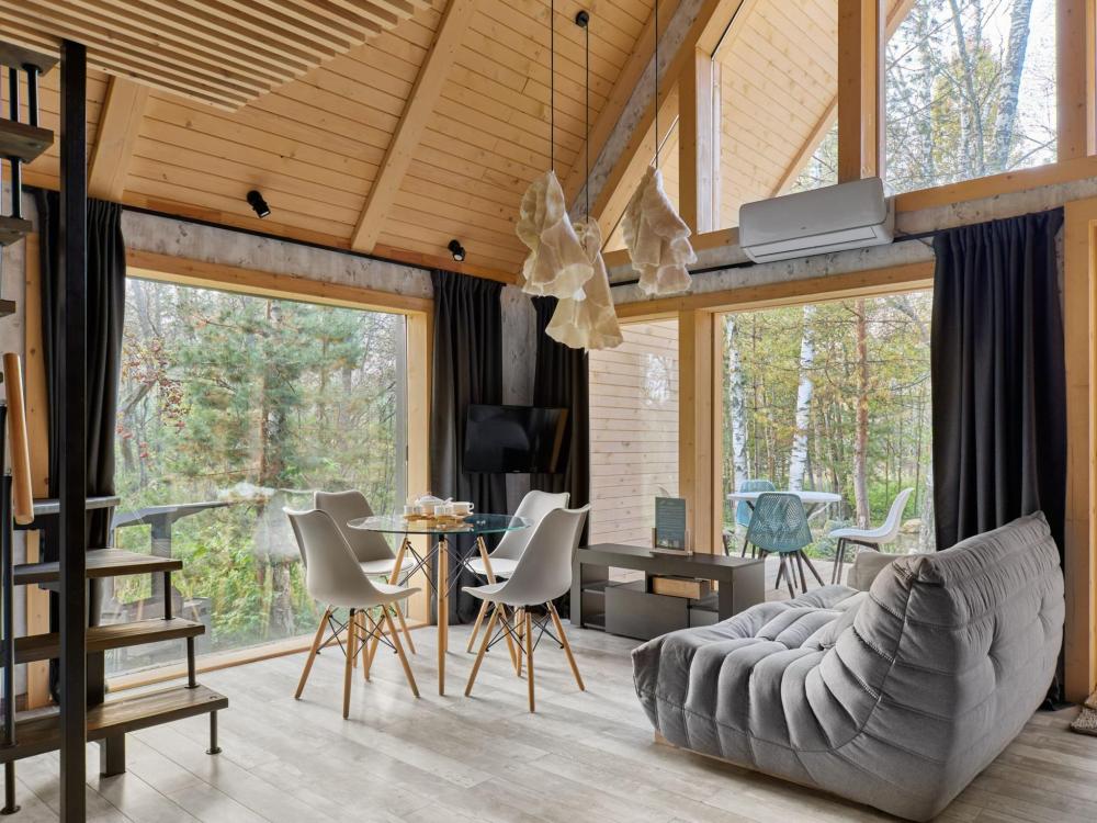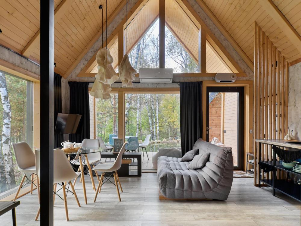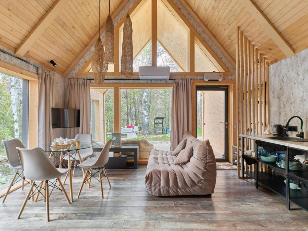 Барн-хаусы созданы для тех, кто хочет уединиться и провести время в особой атмосфере. Каждый дом — личное пространство для релаксации. Постельное белье и полотенца. Халаты, тапочки, шапочки для бани Набор средств личной гигиены. Оборудованная кухня и Smart TV. Доступ к личному пруду и мангальной зоне