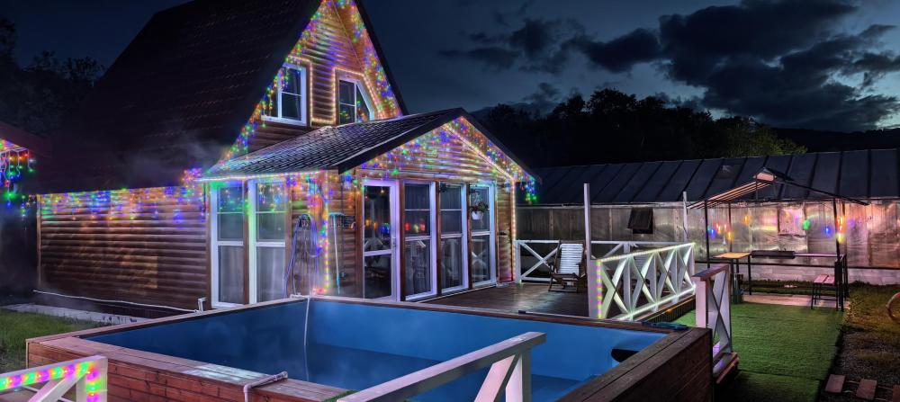 Предлагаем к сдаче гостевые дома «Два Дома», расположенные в центре с. Паратунка, курортной зоне Камчатского края. Два уютных домика мансардного типа в каждом из которых открытая терраса, теплая застекленная веранда с мебелью, кухня-гостиная со всем необходимым для проживания, по три раздельные комнаты в каждом, два санузла, душевая. Изюминкой комплекса является круглогодичный бассейн на открытом воздухе с термальной водой температурой от 35 до 40 град. Бассейн расположен прямо у входа в дом, никуда идти ненадо. Вместимость в 1 дом до 6 человек. По 2 человека в комнате. Территория закрытая. Охраняемая. Машины паркуются у дома. У каждого дома мангал под крышей, предоставляем шампуры, решетку, казан. Зона отдыха (качели, гамаки ручной работы), дартс, батут по сезону, на террасах установлена уличная мебель, мебель для загара. Можно снять как весь комплекс, (два дома с бассейном), так и один дом. Весь комплекс оснащен оригинальной подсветкой, которая создает романтическое настроение в вечернее время. В шаговой доступности от нас (3 минуты) ресторан, где предлагается питание по системе "Шведский стол" и по меню (вход свободный),и так же паб, кафе, аптека, магазин, автобусная остановка. Наши дома не большие, но очень уютные, чистые, комфортные. Именно у нас вы будете чувствовать себя как дома. Возможно размещение с животными за дополнительную оплату 1500 руб. в сутки. //paratunka-2doma НЕ СДАЁМ ДОМ БУЙНЫМ И ШУМНЫМ КОМПАНИЯМ И ЛЮБИТЕЛЯМ ГРОМКО СЛУШАТЬ МУЗЫКУ НА УЛИЦЕ ПОСЛЕ 22.00, НЕ ПРИВЕТСТВУЕМ ИСПОЛЬЗОВАНИЕ СВОЕЙ АУДИОТЕХНИКИ НА НАШЕЙ ТЕРРИТОРИИ