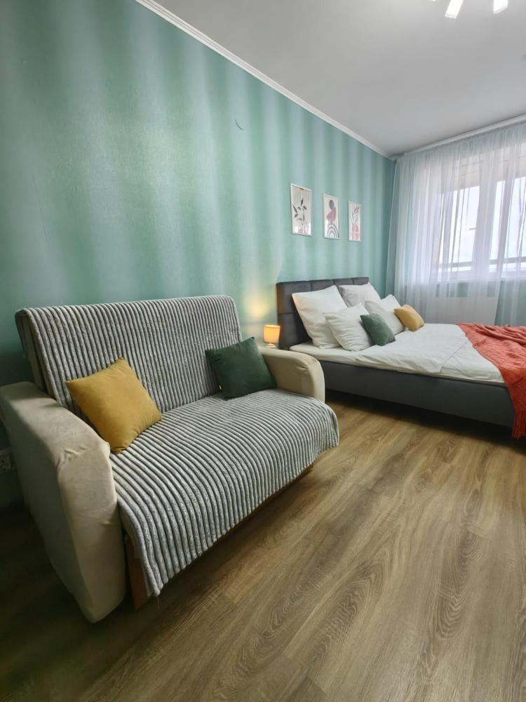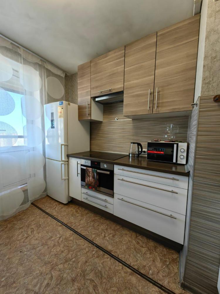 1-комнатные апартаменты стандарт на 20 этаже 25-этажного дома На кухне плита с духовым шкафом, микроволновка, холодильник и вся необходимая посуда. Также имеется стиральная машина, утюг и гладильная доска, телевизор.