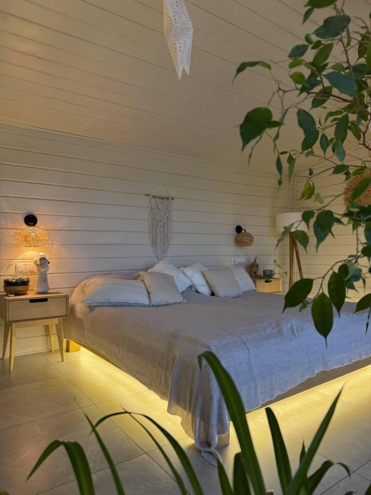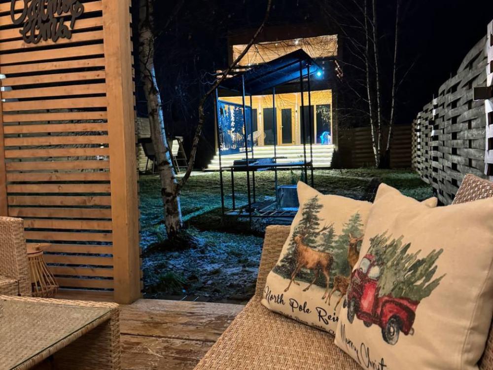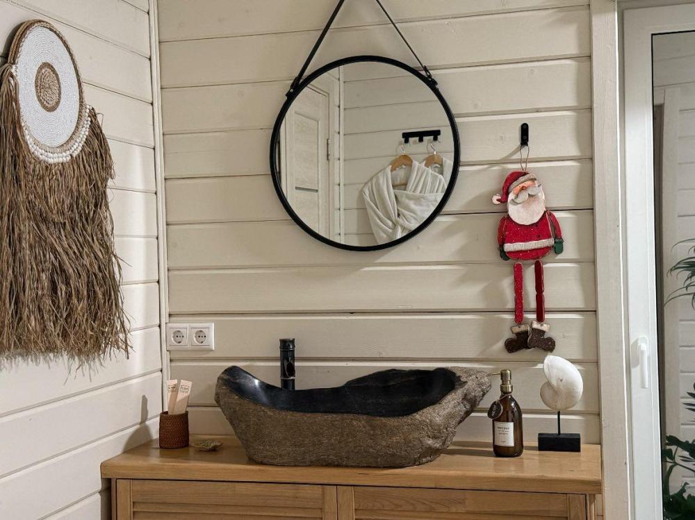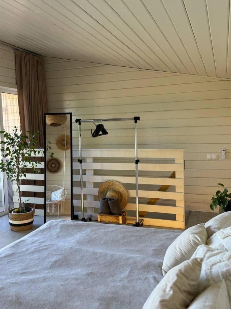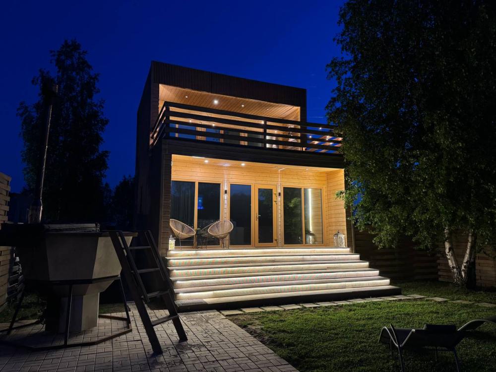 Комфортный и просторный дом на берегу реки Клязьма, рассчитан на размещение до 4-х человек. У дома расположен собственный банный чан, мангальная зона, беседка. В доме большая спальня с подвесными креслом-гамаком и панорамным видом на реку, терраса с садовой мебелью, гостиная с электрическим камином, полностью оснащённая кухня, питьевая вода, телевизор (Smart TV), колонка с Алисой, настольные игры, Wi-Fi. В доме 4 спальных места (на втором этаже двуспальная кровать Double king size 2х2м, на первом этаже раскладной двуспальный диван), комфортный санузел внутри дома.
