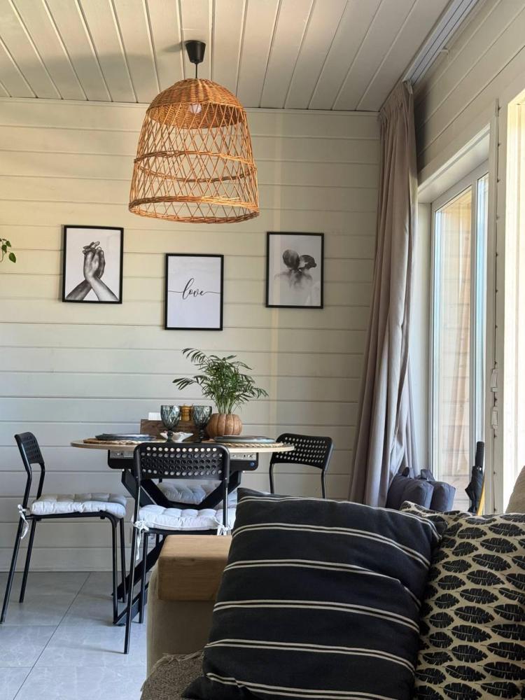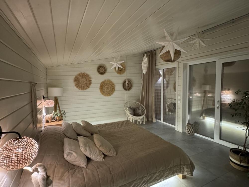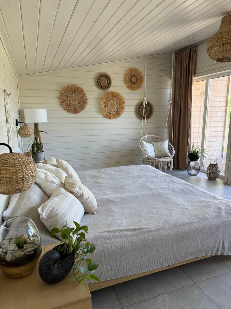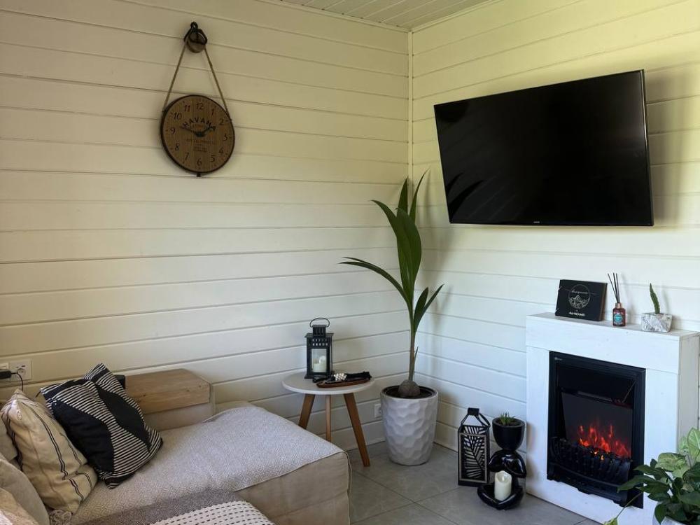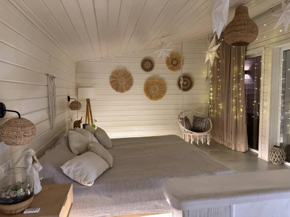 Комфортный и просторный дом на берегу реки Клязьма, рассчитан на размещение до 4-х человек. У дома расположен собственный банный чан, мангальная зона, беседка. В доме большая спальня с подвесными креслом-гамаком и панорамным видом на реку, терраса с садовой мебелью, гостиная с электрическим камином, полностью оснащённая кухня, питьевая вода, телевизор (Smart TV), колонка с Алисой, настольные игры, Wi-Fi. В доме 4 спальных места (на втором этаже двуспальная кровать Double king size 2х2м, на первом этаже раскладной двуспальный диван), комфортный санузел внутри дома.