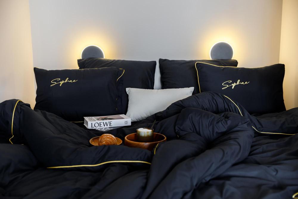 Двуспальная кровать с ортопедическим матрасом и премиальным постельным бельём