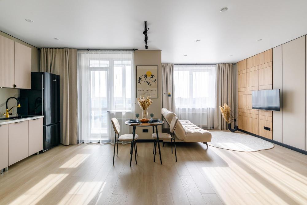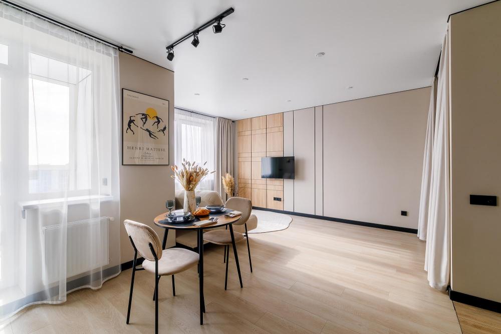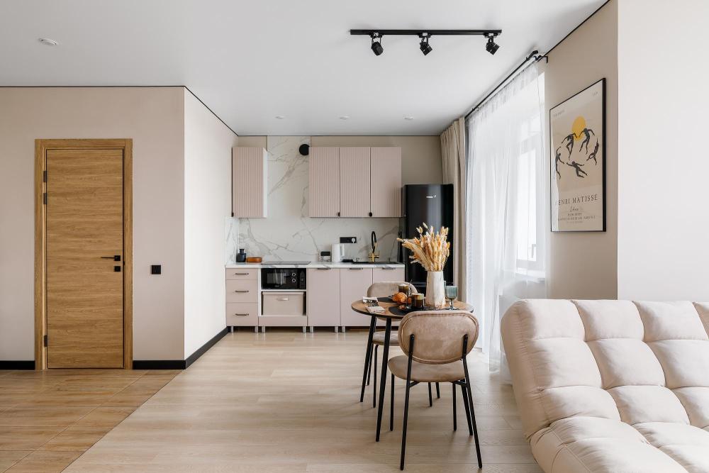 Современный дизайн, уютная, теплая квартира. Нейтральная база из оттенков бежевого,