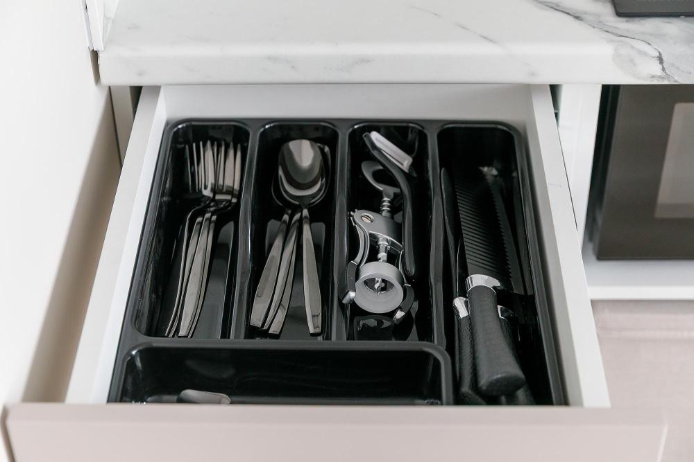 Кухня полностью оборудована: микроволновка, холодильник, чайник, индукционная варочная панель, фильтрованная вода