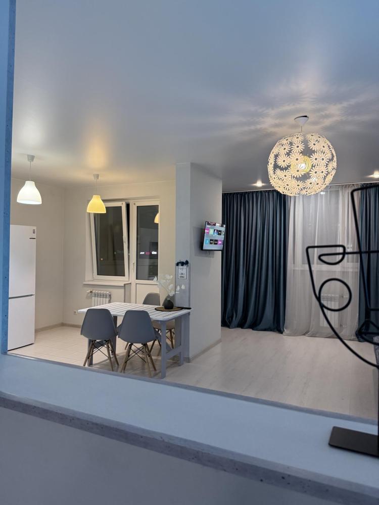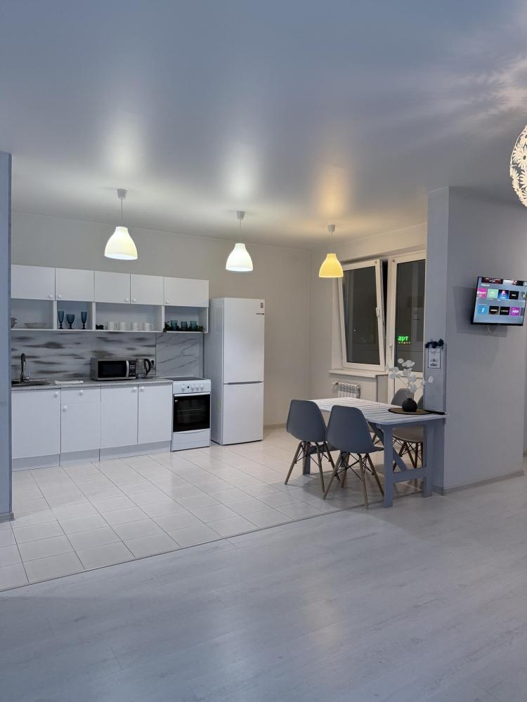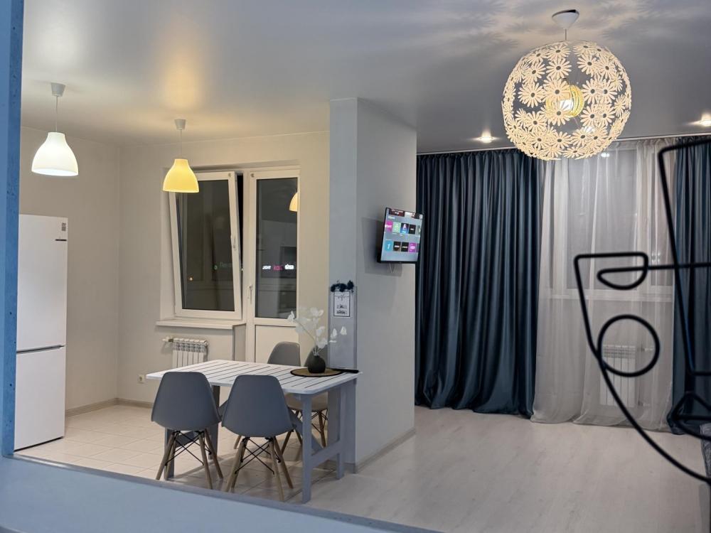Апартаменты студия в ЖК»ТРИУМФ» на улице Плеханова. Для комфортного проживания гостей апартаменты оборудованы всем необходимым: кухонный гарнитур с необходимой бытовой техникой, обеденный стол с 4 стульями, место для хранения одежды, одна двуспальная кровать, диван на 2 человека, WI-FI, отпариватель, фен, стиральная машинка, телевизор SMART TV, чистое выглаженное в прачечной постельное бельё и полотенца.