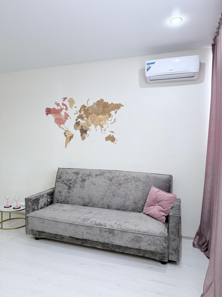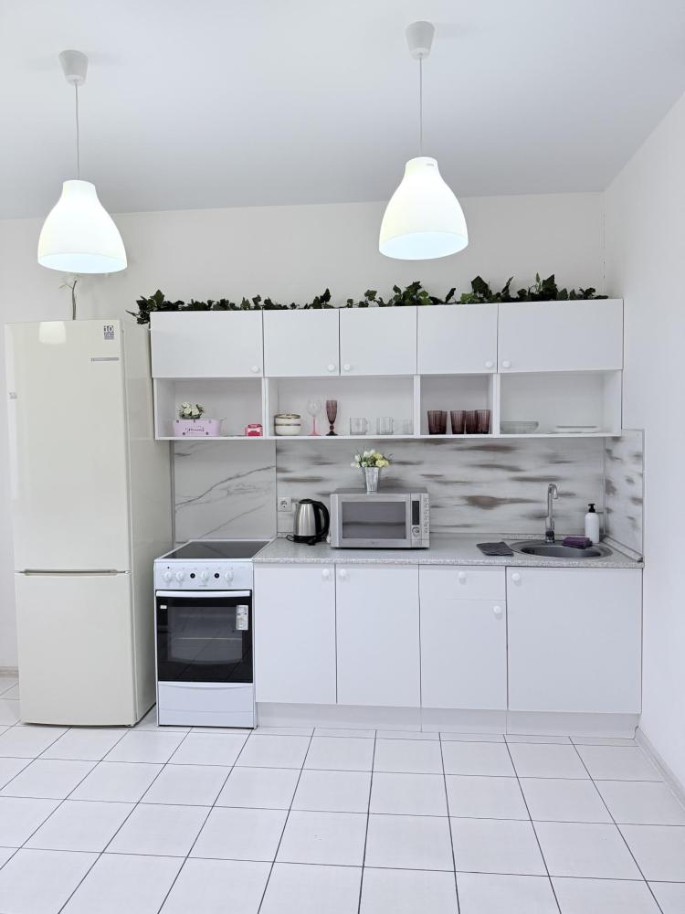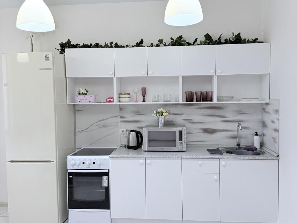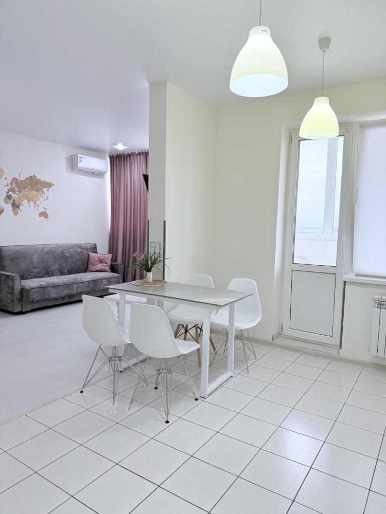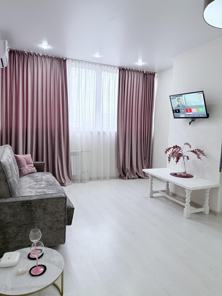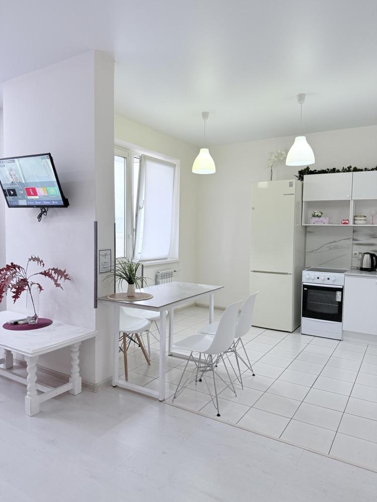 Апартаменты студия на улице Плеханова в ЖК»ТРИУМФ». Для комфортного проживания гостей апартаменты оборудованы всем необходимым: кухонный гарнитур с необходимой бытовой техникой, обеденный стол с 4 стульями, место для хранения одежды, одна двуспальная кровать, диван на 2 человека, WI-FI, отпариватель, фен, стиральная машинка, телевизор SMART TV, чистое выглаженное в прачечной постельное бельё и полотенца.