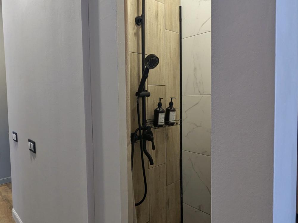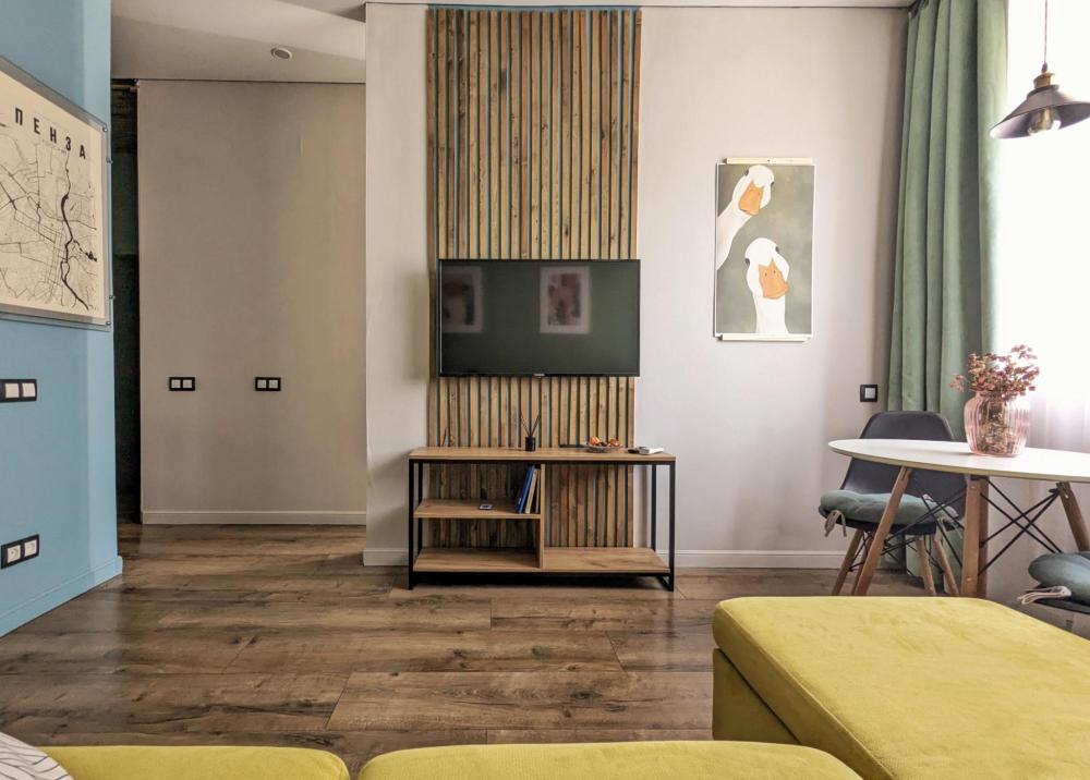 Апартаменты однокомнатные, вместимость до 4 гостей: двуспальная кровать с ортопедическим матрасом на втором ярусе, а также двуспальный диван. В квартире есть Smart TV и Wi-Fi (скорость - 250 Мб/с). Кухня оснащена всем необходимым для приготовления еды: посуда, чайник, микроволновая печь и варочная панель, холодильник. Стиральная машина, фен, утюг, гладильная доска и ручной пылесос в наличии. Предусмотрен удобный вместительный шкаф, а также гигиенические принадлежности и полотенца. Окна квартиры выходят во двор, что обеспечивает спокойный и тихий отдых.