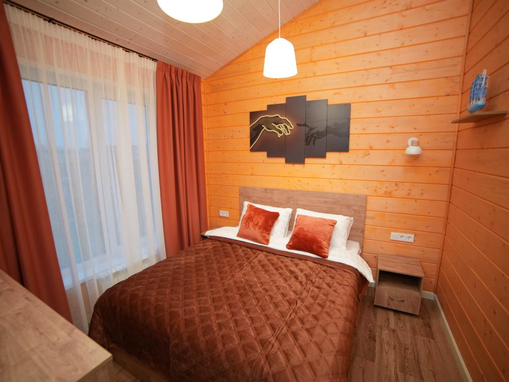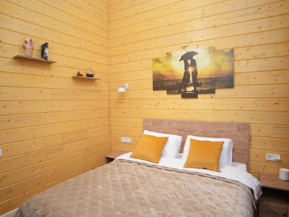 Коттедж с крышей необычной каплевидной формы, круглые окна в стиле иллюминатора в спальне и гостиной, элементы отделки фасада и террасы выполнены в стиле яхтинга, панорамные окна в гостиной. В доме есть TV с интернет-каналами, Wi-Fi, зона барбекю, индивидуальная система отопления и кондиционирования, кухня с посудой, микроволновая печь, мини-холодильник, электрическая плита, полотенца, постельные принадлежности, санузел с душевой кабиной, турка, уличная мебель, фен, чайник, шампунь, гель для душа и электрический подогрев пола. Изюминкой коттеджа является подогреваемая купель-фурако с гидромассажем и подсветкой (оплачивается дополнительно- 5000 руб.). Используя термокрышку, вы можете пользоваться ей на протяжении 5-6 часов! К купели предоставляются халаты, полотенца и тапочки.