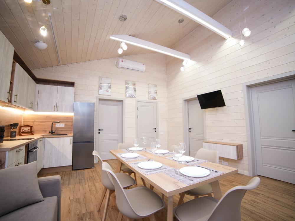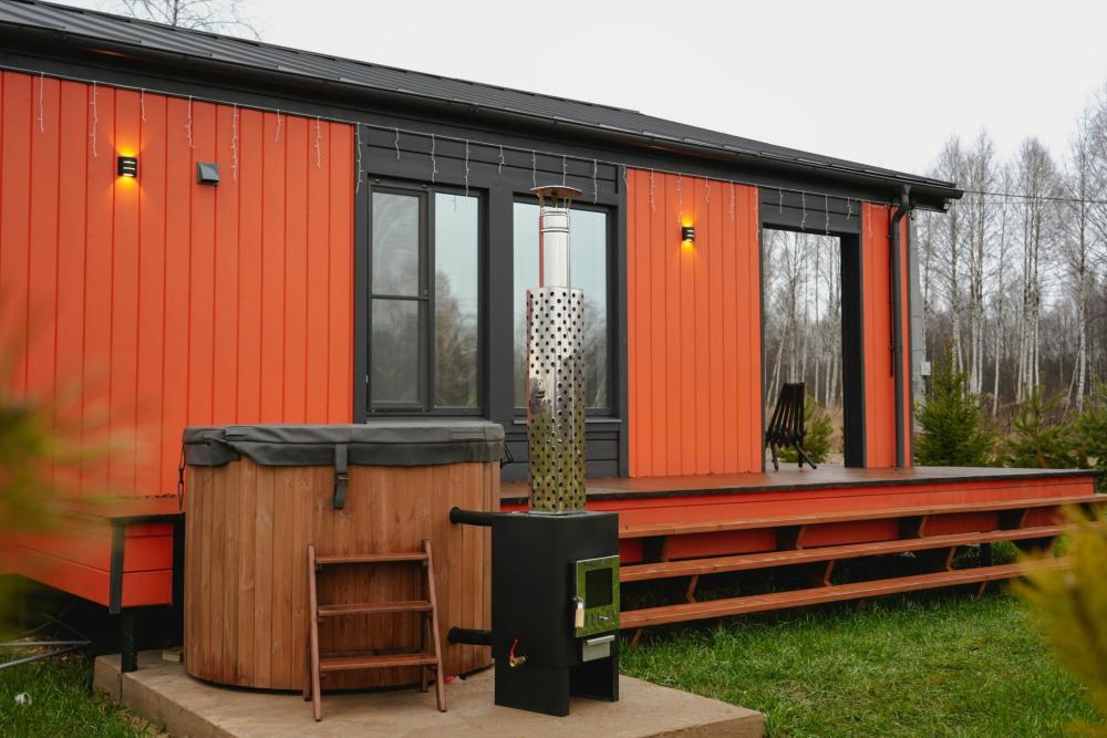 Стильный и динамичный модульный дом вмещает 2 гостей на основных местах и 2 на дополнительных. В доме есть TV с интернет-каналами, Wi-Fi, зона барбекю, индивидуальная система отопления и кондиционирования, кухня с посудой, микроволновая печь, мини-холодильник, электрическая плита, полотенца, постельные принадлежности, санузел с душевой кабиной, турка, уличная мебель, фен, чайник, шампунь, гель для душа и электрический подогрев пола.Изюминкой коттеджа является подогреваемая купель-фурако с гидромассажем и подсветкой (оплачивается дополнительно- 5000 руб.). Используя термокрышку, вы можете пользоваться ей на протяжении 5-6 часов! К купели предоставляются халаты, полотенца и тапочки.