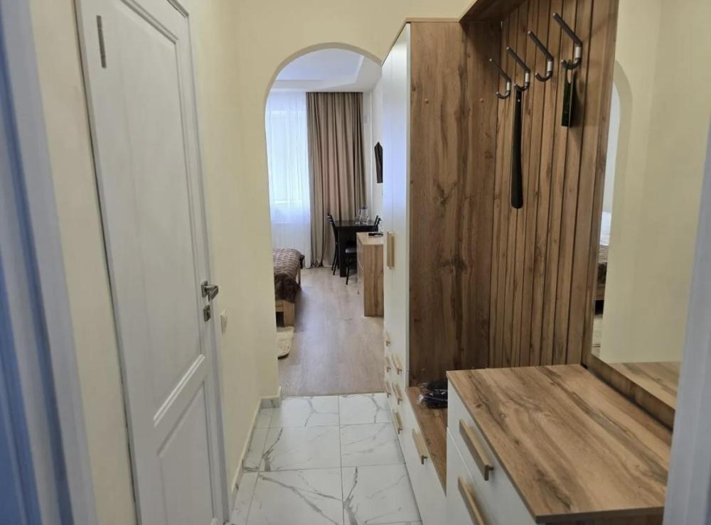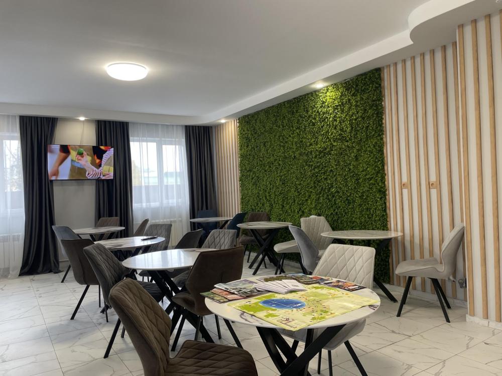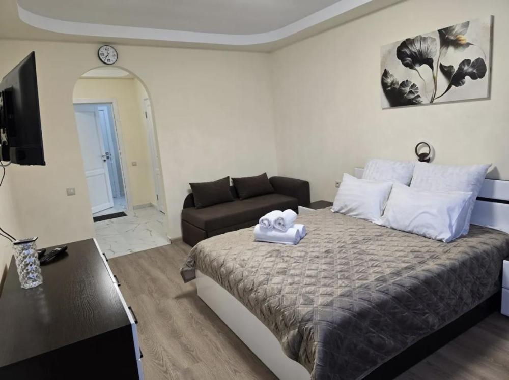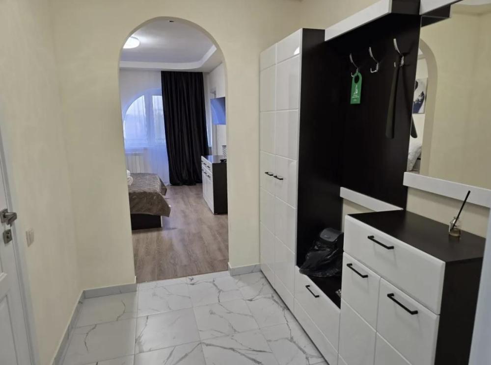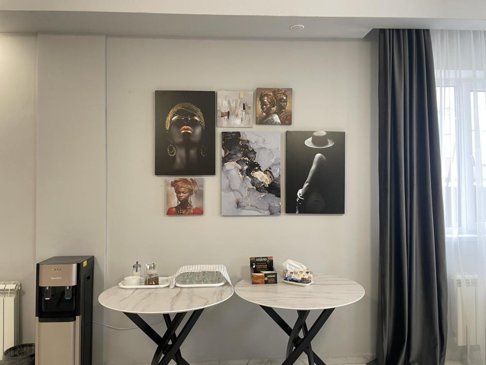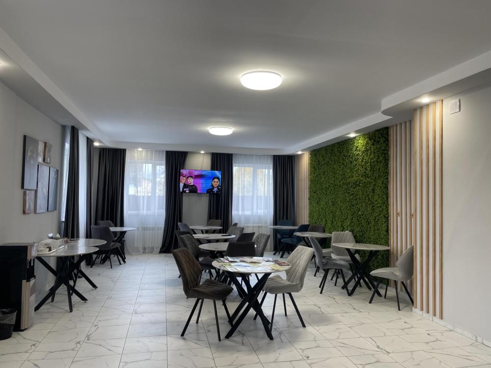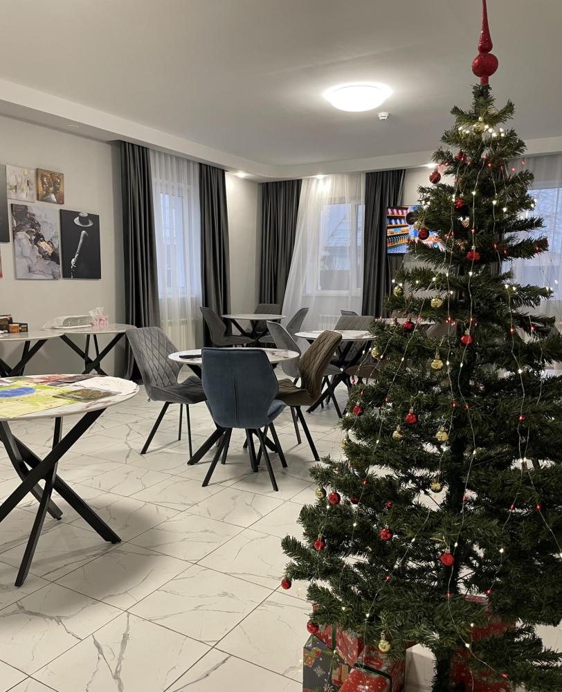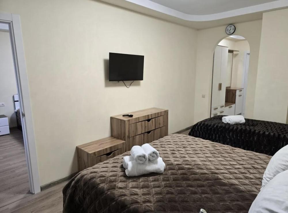 Номер с окном/балконом. Двухкомнатный люкс,просторный угловой диван,раскладывается на три полноценных спальных места, телевизор,стол,стулья,электрический чайник,стаканы,графин.Вторая комната с двухспальной кроватью прикроватными тумбами. Бесплатный Wi-Fi,на каждом этаже кулер с горячей и холодной водой,утюг и гладильная доска.