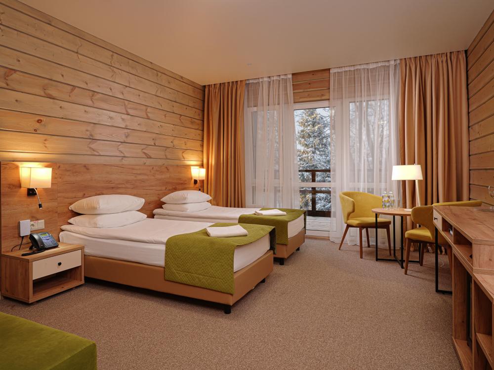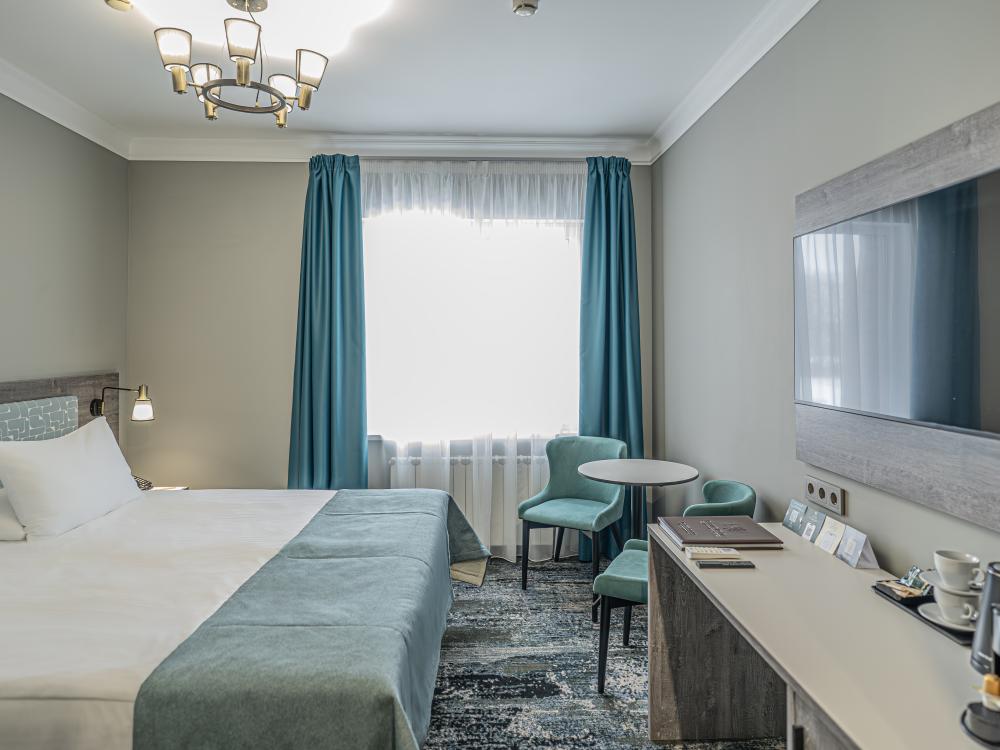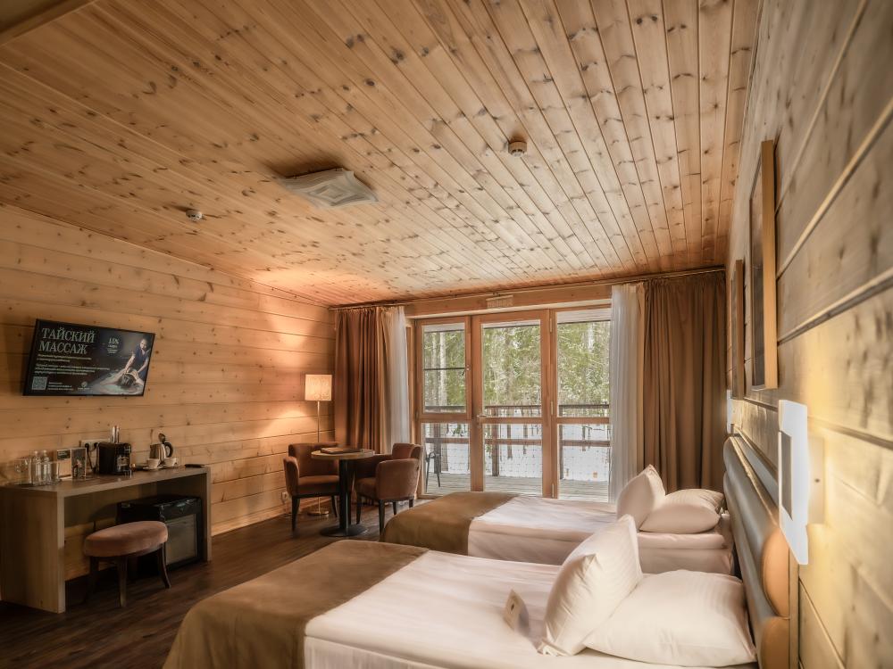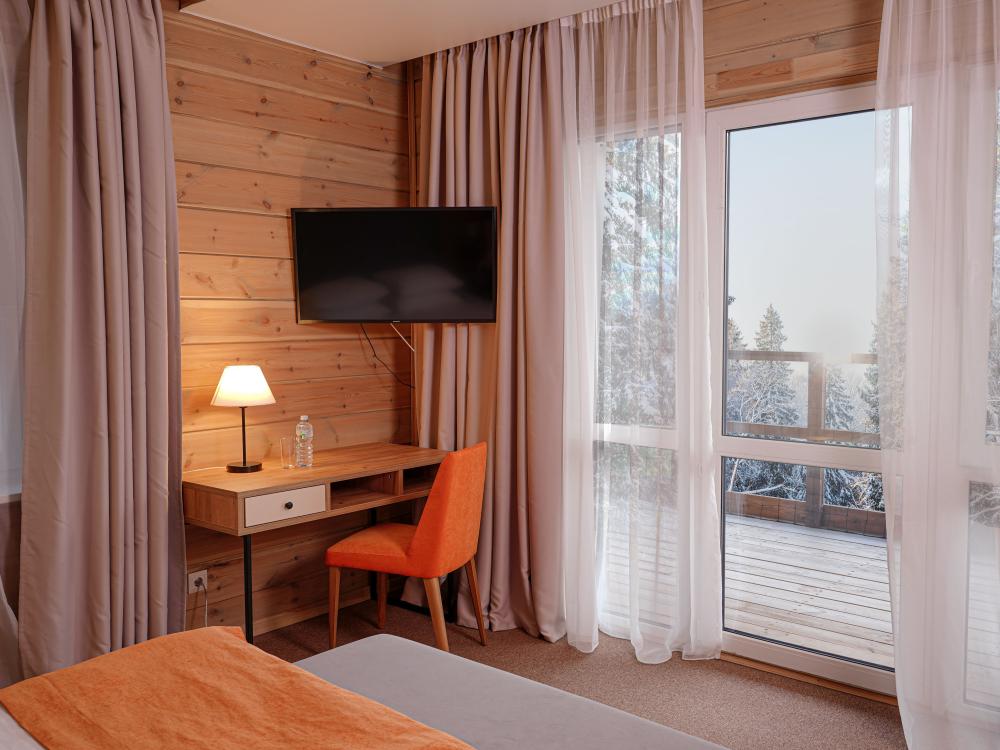 Номер СУПЕРИОР - просторный однокомнатный номер для комфортного отдыха вдали от городской суеты. Размещение детей от 3 до 14 лет с проживанием родителей возможно на дополнительном месте в номере за дополнительную оплату.
