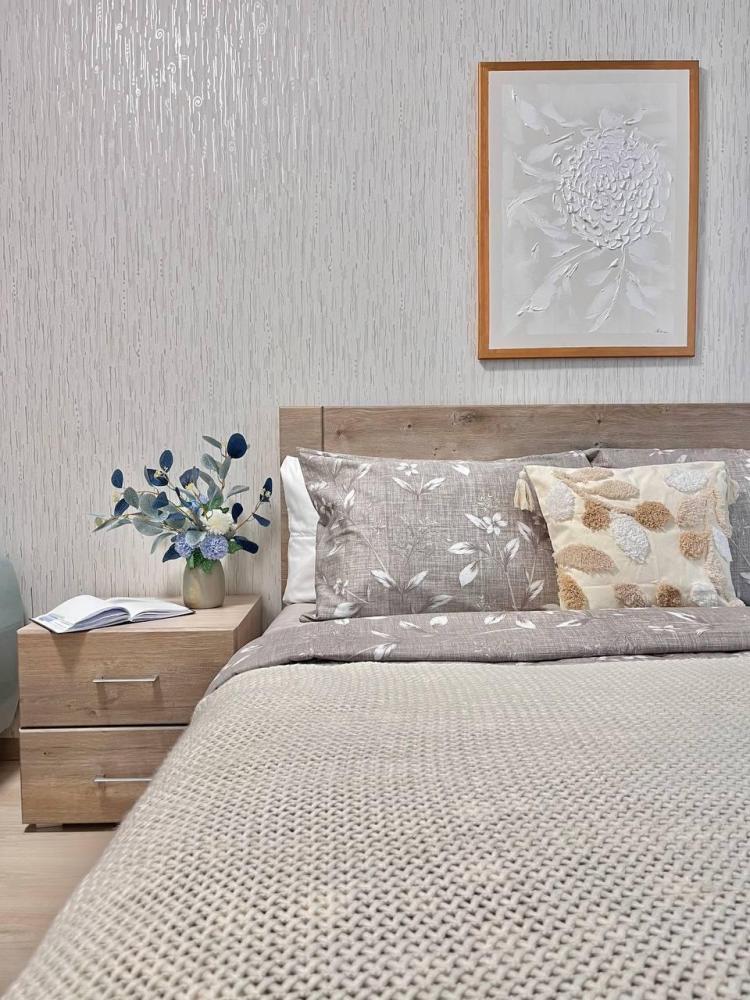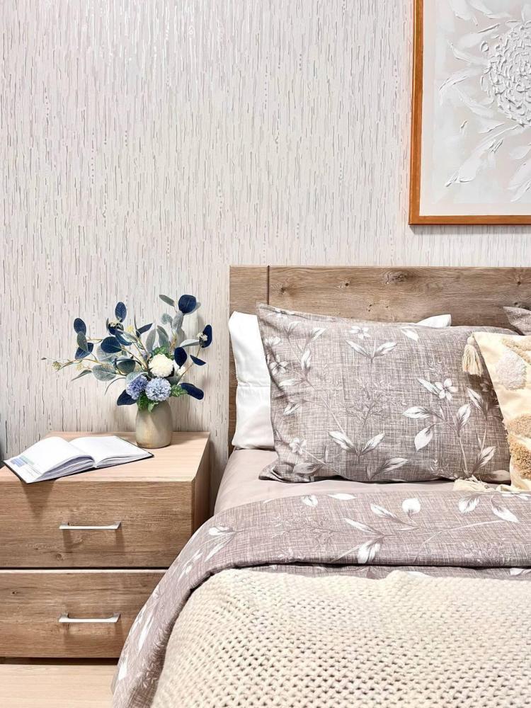 двуспальная кровать с ортопедическим матрасом, с уже заправленным чистым постельным бельем. Натуральное хлопковое постельное белье.