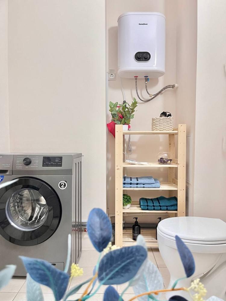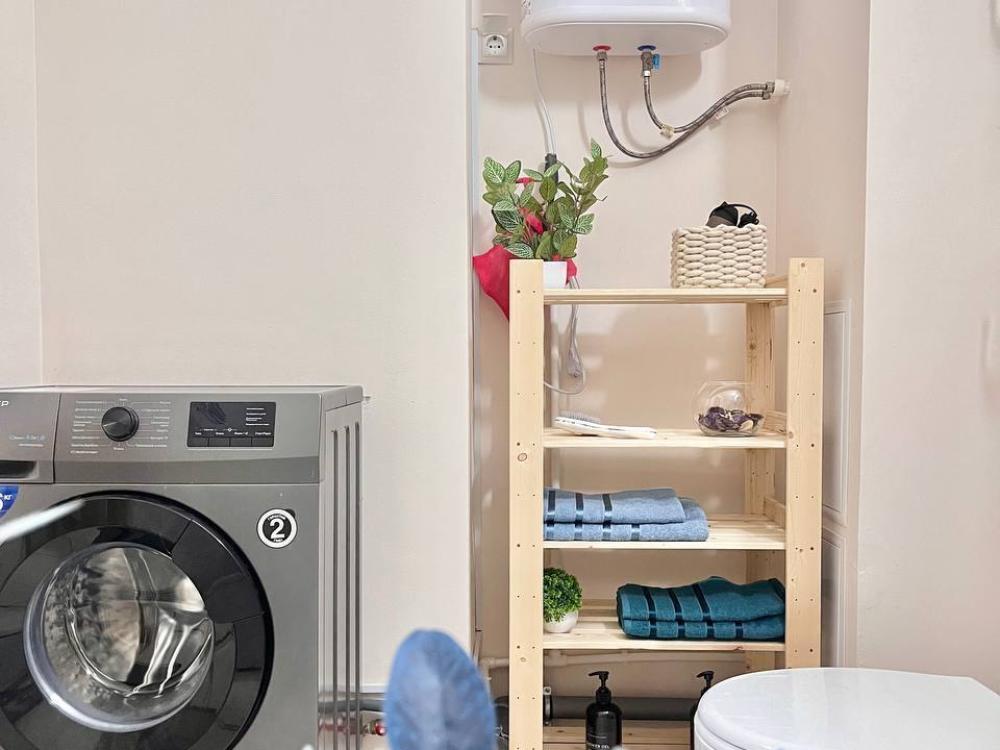 бытовая техника (телевизор SМАRТ ТВ, стиральная машина, холодильник, СВЧ печь, электрическая плита, утюг, фен) гладильная доска, сушилка.