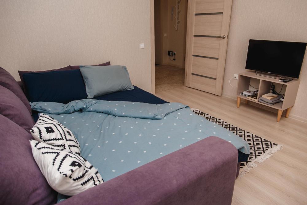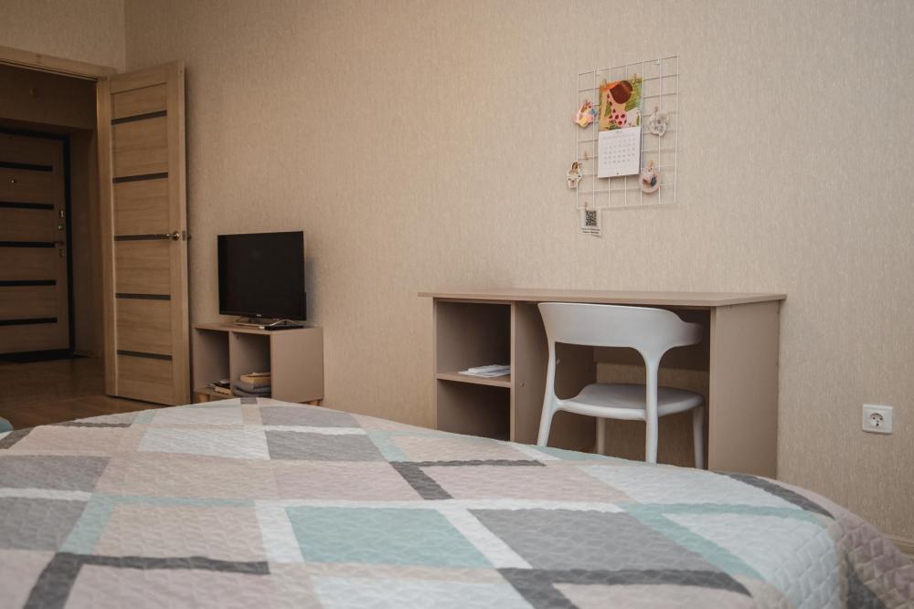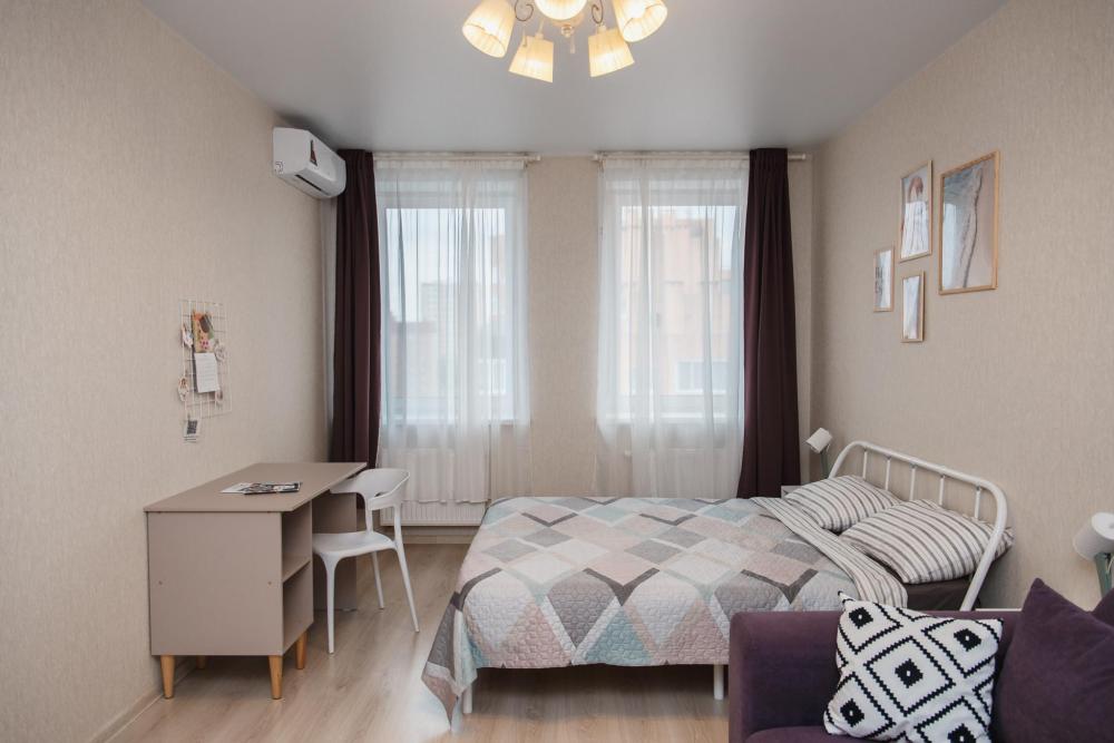 Уютные евродвухкомнатные апартаменты, вместимостью до 4 гостей. В апартаментах есть все удобства для комфортного проживания: двуспальная кровать и 2 раскладных двуспальных дивана в спальне и кухне-гостиной, чистое постельное белье и набор полотенец, посуда для еды и готовки, гладильная доска и сушилка для белья, полное оснащение бытовой техникой, кондиционер, холодильник, варочная поверхность, микроволновая печь, чайник, SMART TV, WI-FI, утюг, фен, стиральная машина, пылесос, водонагреватель.