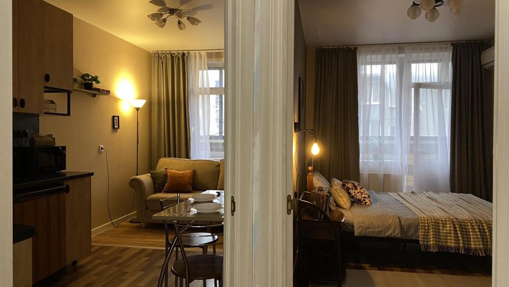 Апартаменты «Brown» - Комфортные апартаменты - для командировок и отдыха! Для гостей города: уютные квартиры с кухней и со всеми удобствами для проживания - как дома, но с бесплатной уборкой*. Ваш комфорт - наша забота! *? Дополнительная бесплатная уборка каждые 5 дней для наших гостей. Удобно расположена рядом с клиникой «Лимфатек» Уютная студия - это идеальное решение для ценителей комфорта и стиля. Здесь есть все, чтобы вы почувствовали себя как дома и насладились незабываемым отдыхом в нашем прекрасном городе! ✅Почему эта квартира отлично подходит Вам? - 4 cпaльныx мeстa (два раздельных): удобная двуспальная кровать и раскладной диван; - Все необходимые кухонные принадлежности для приготовления еды (посуда, электрический чайник, плита, холодильник, микроволновая печь ); - Утюг, фен, стиральная машина, гладильная доска, сушилка для белья; - бесплатный WI-FI, Smart-TV; ?Расположена рядом с: Эспланада, квартира Коляна-место съемок сериала "Реальные пацаны" , ТЦ IMALL, ТЦ Колизей, ЦУМ, Пермская художественная галерея, Зоопарк, Автовокзал и многое другое. Рады предложить для Вас дополнительный сервис в период проживания: *?Можно с животными- по предварительному согласованию (за отдельную плату от 300 руб. за сутки)! ?Правила заселения: ⏰Бесконтактное КРУГЛОСУТОЧНОЕ самостоятельное заселение. Вы получаете инструкцию и заселяетесь, следуя всем указаниям - Расчетное время: заселение с 15.00, выезд до 12.00 - Не сдаётся для мероприятий и шумных вечеринок! - Для заселения необходимы селфи и фото паспорта. - Залог 2000р. В апартаментах на входе имеется видеонаблюдение, используется в качестве обеспечения Вашей безопасности и сохранности нашего имущества. Оставшаяся сумма и залог вносятся до заселения, после подписания оферты. Данный документ гарантирует Вам оказание заявленных нами услуг.
