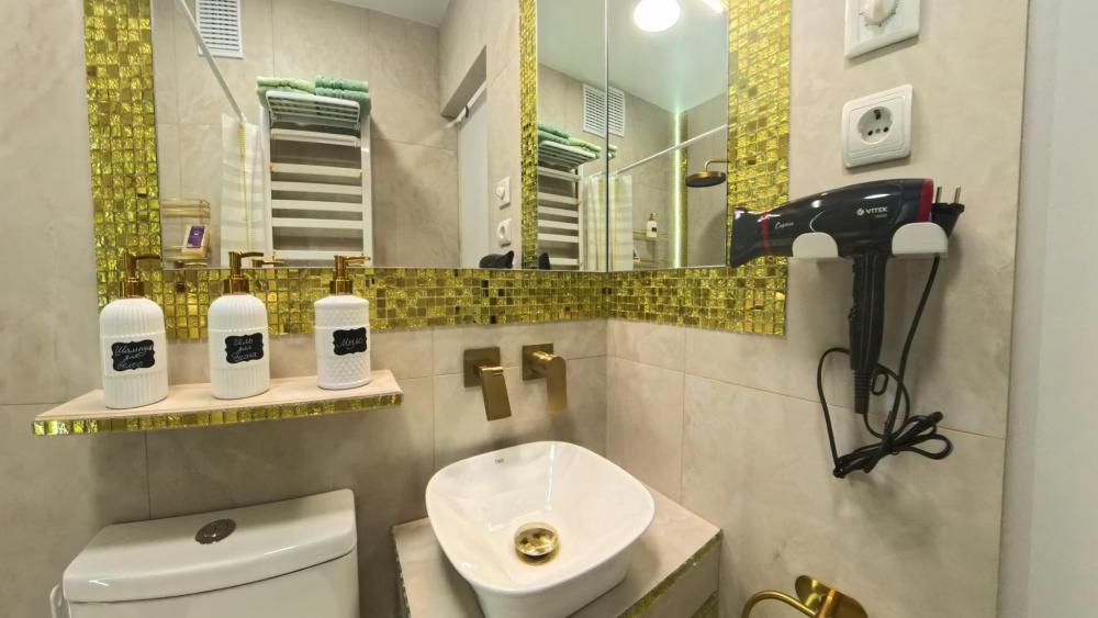 В квартире имеется все необходимое для комфортного проживания : современная двуспальная кровать с ортопедическим матрасом, Wi-Fi, TV, кондиционер (сплит-система), стиральная машина, сушильная машина, полностью оборудованная кухня (плита, холодильник, тостер, чайник, микроволновка, посуда), фен, гигиенические принадлежности, набор полотенец.