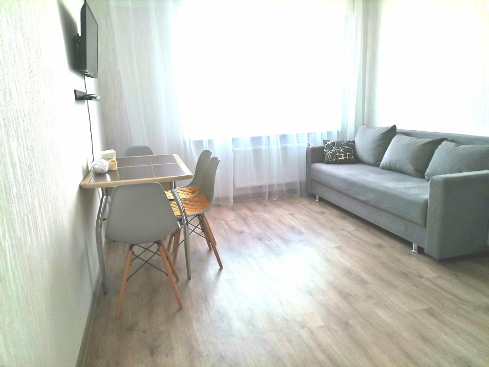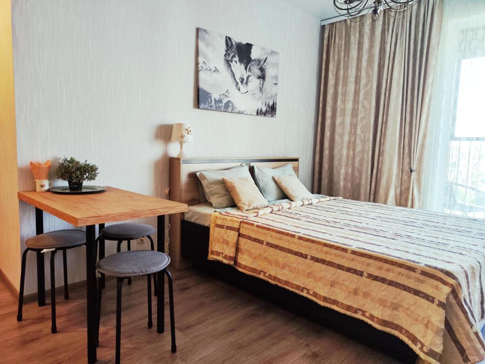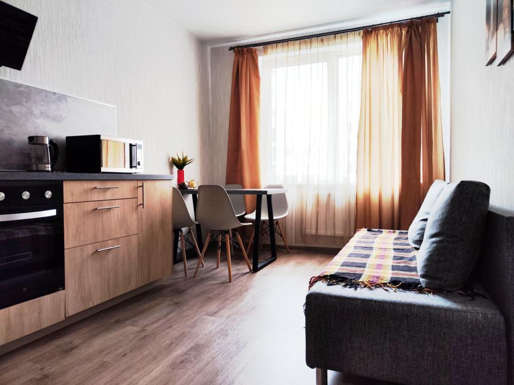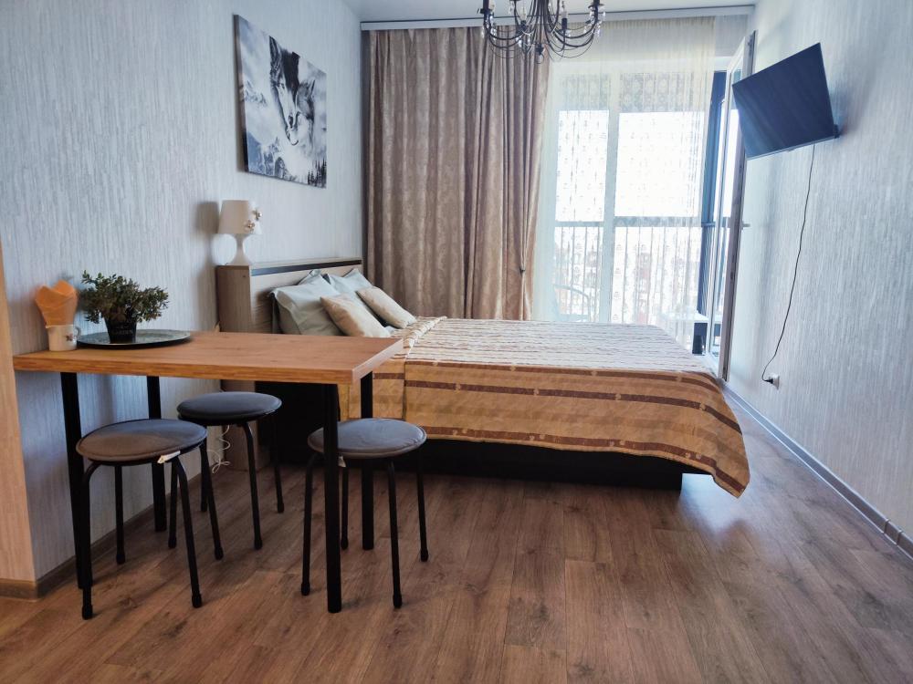 Квартира , состоит из 1 комнаты и кухни, для проживания до 4 человек. Есть все необходимое для комфортного проживания. Изюминкой квартиры является большая терраса.