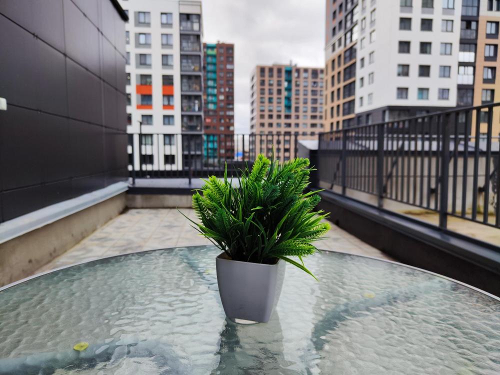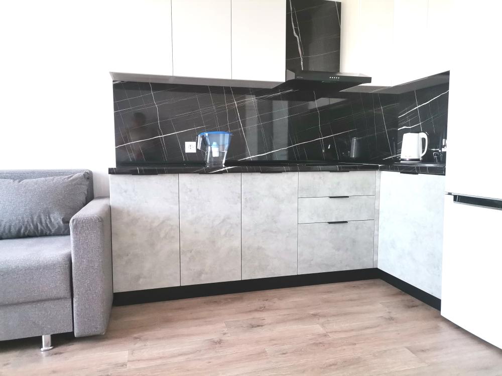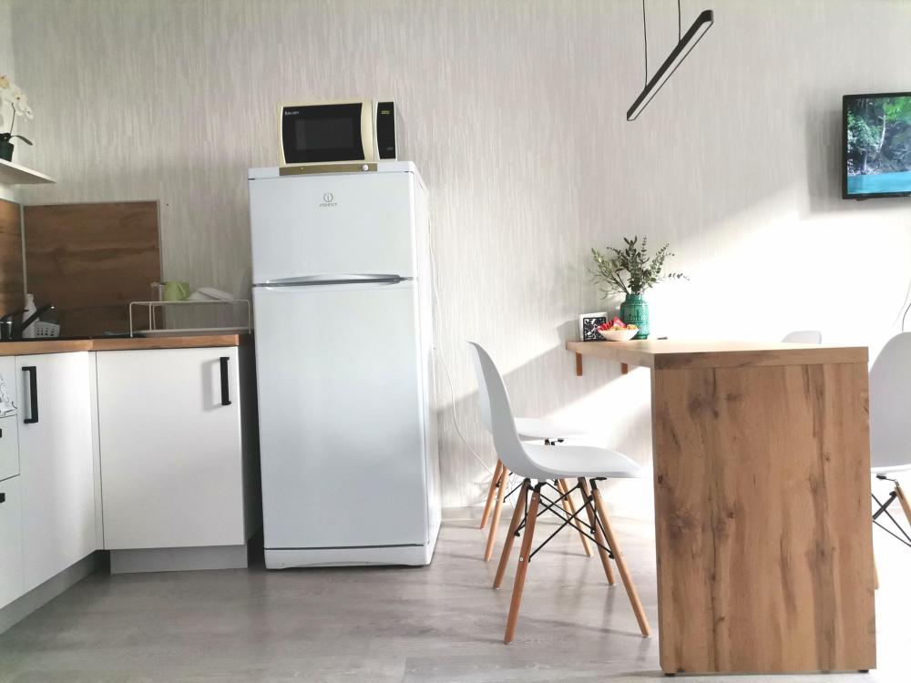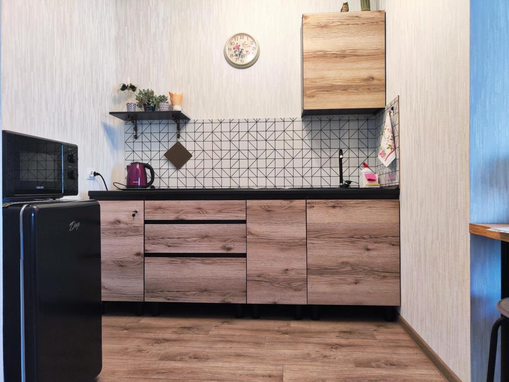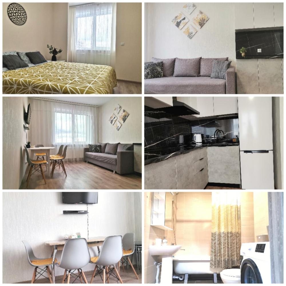 Квартира , состоит из 1 комнаты и кухни, для проживания до 4 человек. Есть все необходимое для комфортного проживания. Изюминкой квартиры является большая терраса.