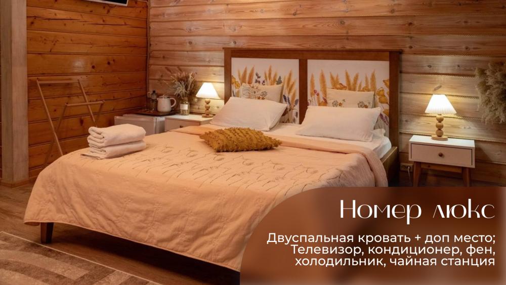 Номер свадебный "Люкс" в ЭКО стиле. У каждого дома свой вход и выход, в каждом номере туалет и душ Для ценителей изысканного пространства.