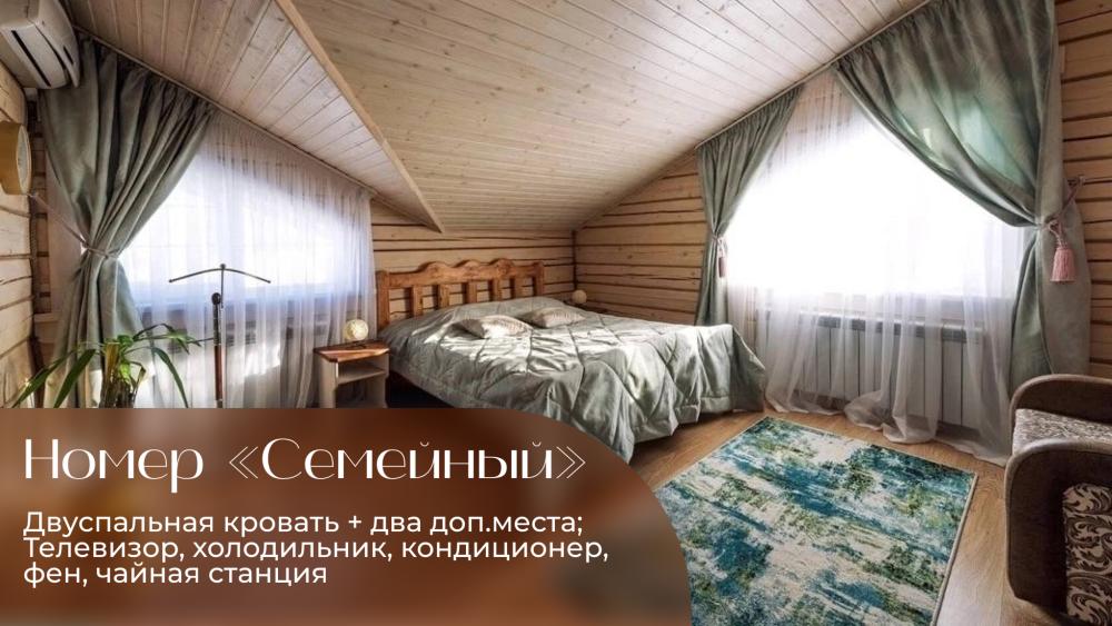 Номер " Семейный" в ЭКО стиле. У каждого дома свой вход и выход, в каждом номере туалет и душ. Для большой семьи или компании из нескольких человек.