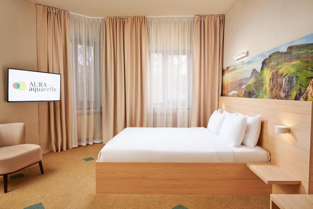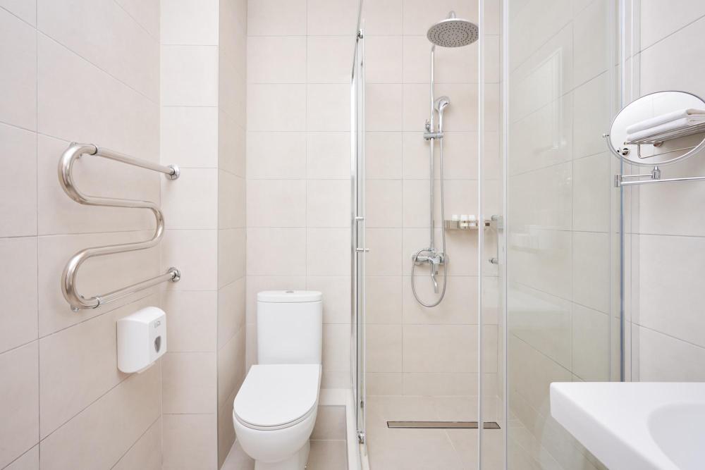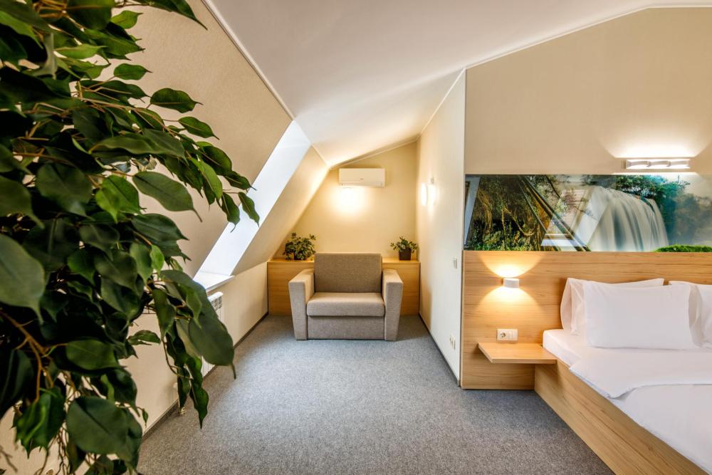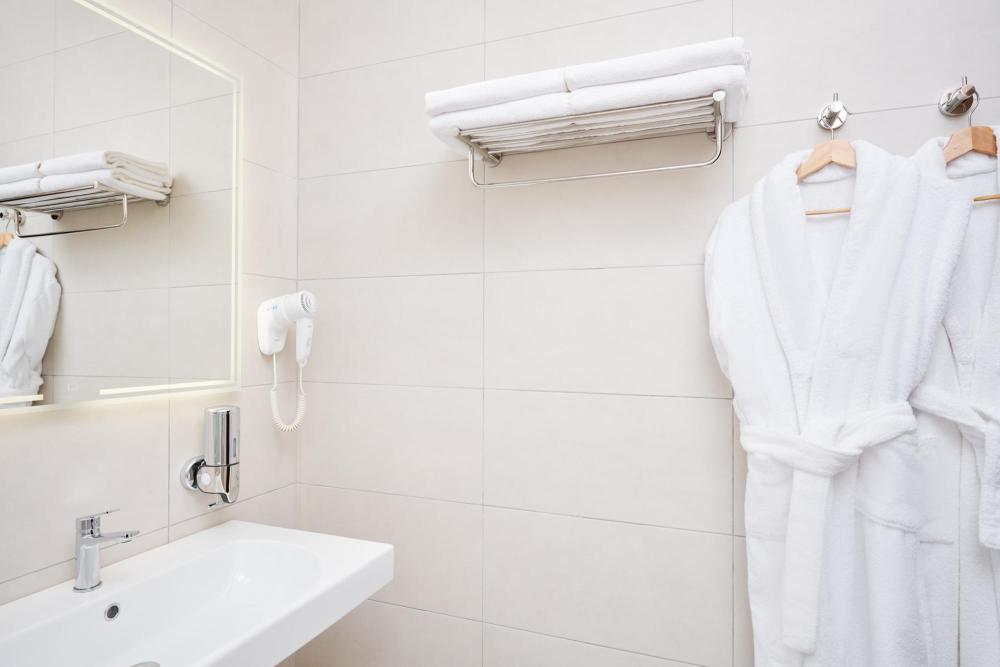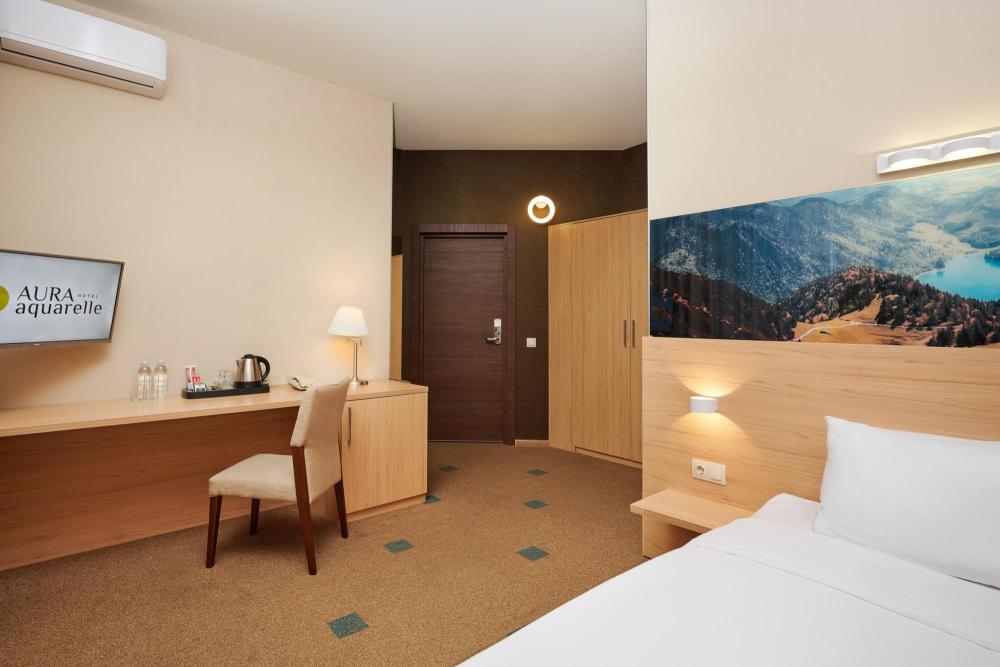 Просторный номер с двуспальной кроватью. Возможно одноместное, двухместное и трехместное размещения. В оснащение номера входит: одна двуспальная кровать и раскладное спальное место, телевизор с плоским экраном, кабельное телевидение, фен, мини-холодильник, душ, банные принадлежности, халат, тапочки, чайная станция. Софа раскладывается, возможно трехместное размещение.