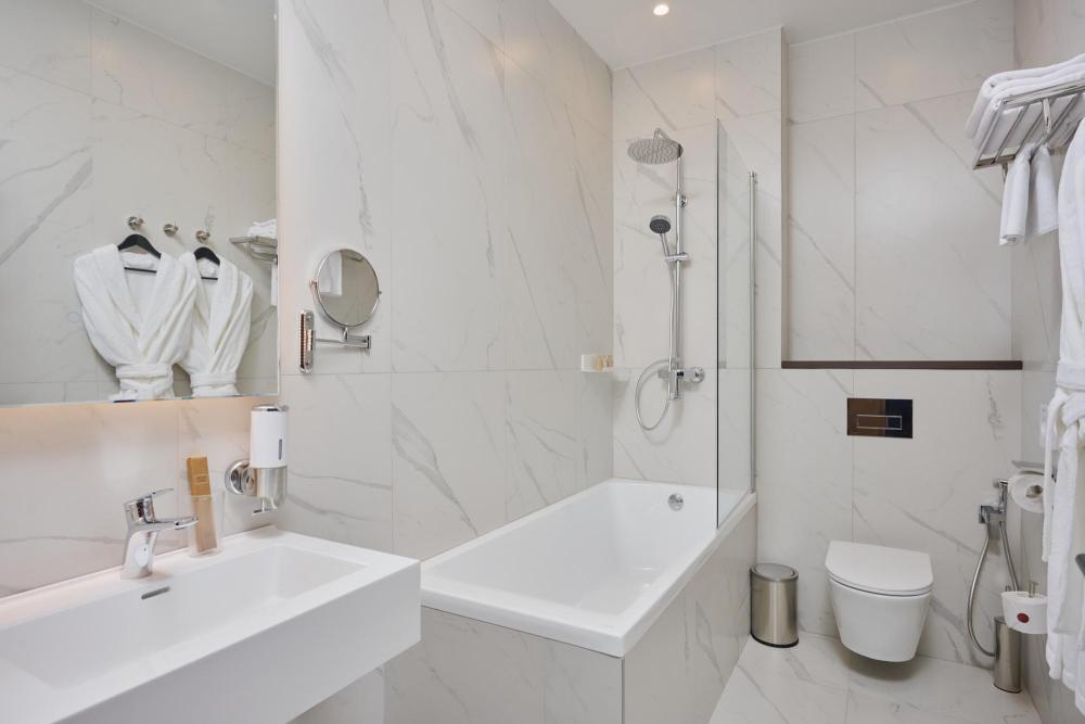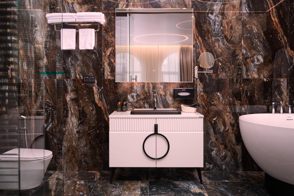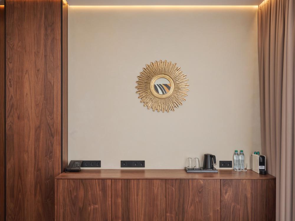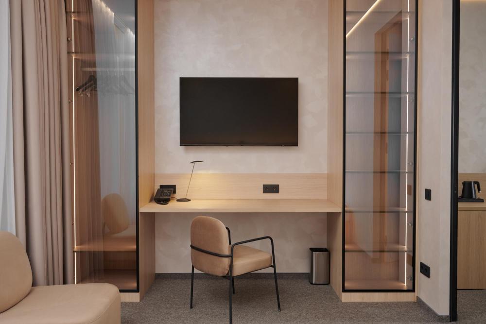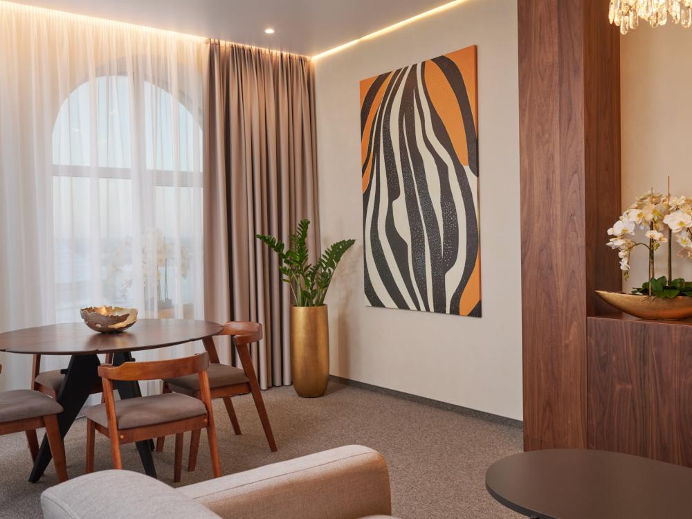Идеальный выбор для тех, кто ценит личное пространство и комфорт. Просторная гостиная с уютной зоной для отдыха станет отличным местом для расслабления после насыщенного дня. Спальная зона имеет двуспальную кровать с качественным матрасом и постельным бельем, что гарантирует крепкий сон. В номере современная ванная комната, оборудованная всем необходимым для комфортного пребывания. В оснащение номера входит: двуспальная кровать (по запросу возможно разделить на две односпальные), просторная ванная комната, фен, халат, тапочки, индивидуальные средства гигиены, мини-холодильник, гладильная доска, утюг, smart-tv, беспроводной Wi-Fi, сейф, чайная станция, бесплатно питьевая вода, чай и кофе.
