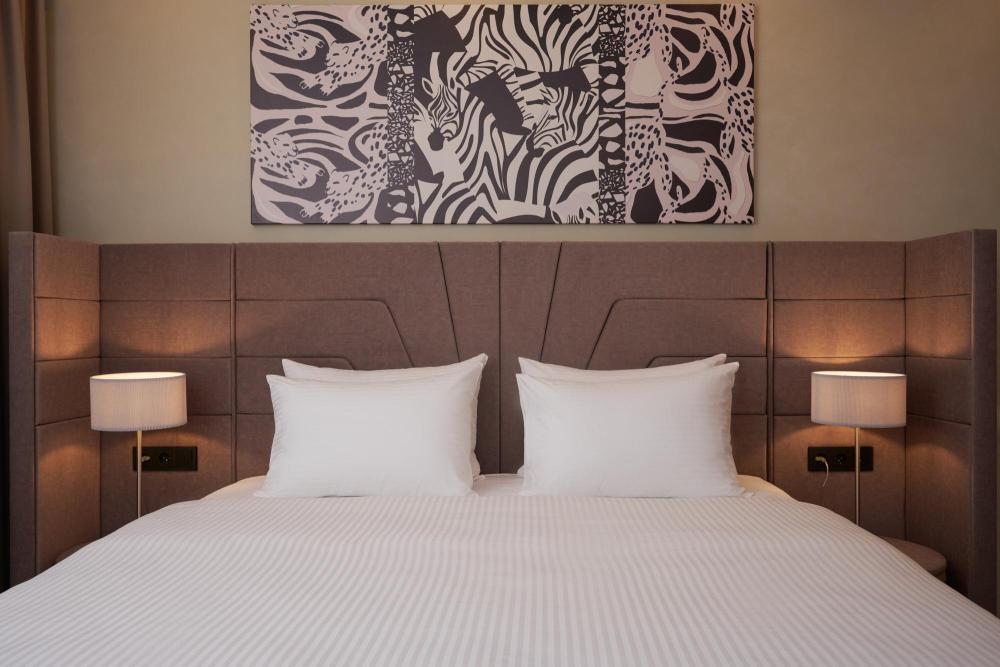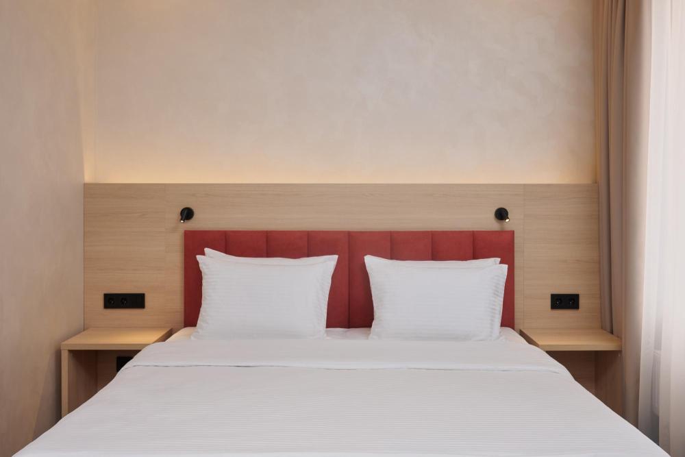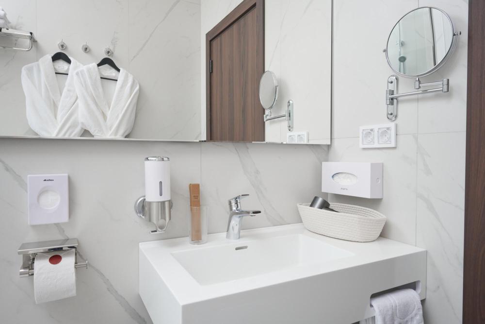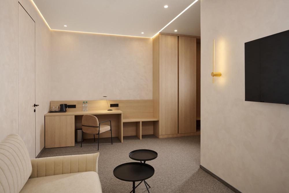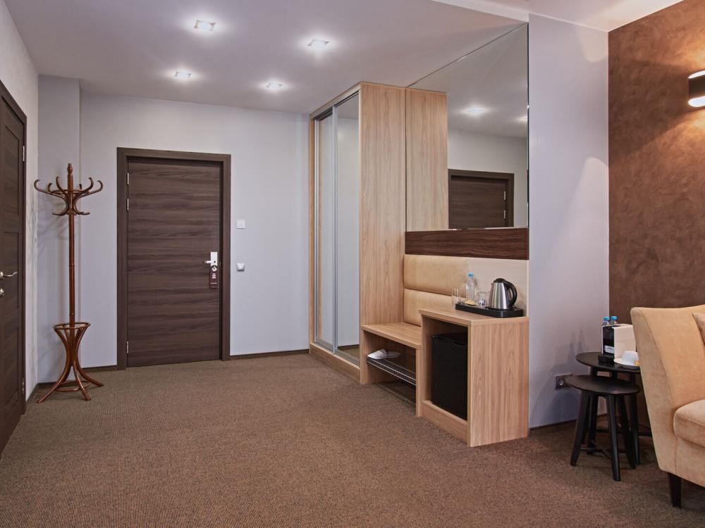 Номер для тех, кто любит пространство. Здесь вы сможете отвлечься от городской суеты, наслаждаясь атмосферой спокойствия и комфорта. Удобно устроившись в мягком уголке, вы сможете расслабиться, почитать книгу, посмотреть телевизор или просто насладиться тишиной. В оснащение номера входит: двуспальная кровать, просторная ванная комната, фен, халат, тапочки, индивидуальные средства гигиены, мини-холодильник, гладильная доска, телевизор, кабельное телевидение, беспроводной Wi-Fi, сейф, чайная станция, бесплатно питьевая вода, чай и кофе.
