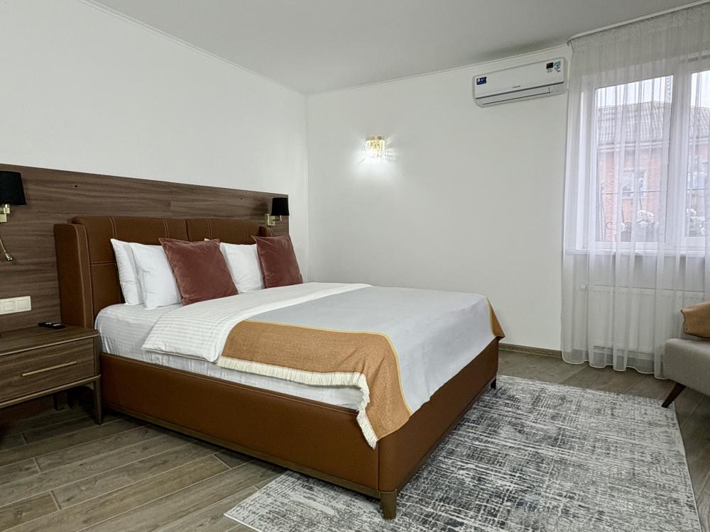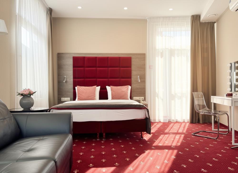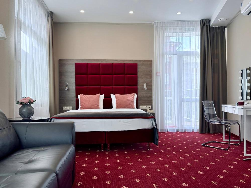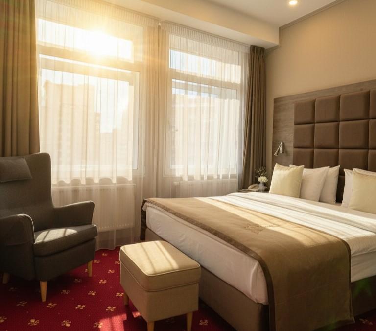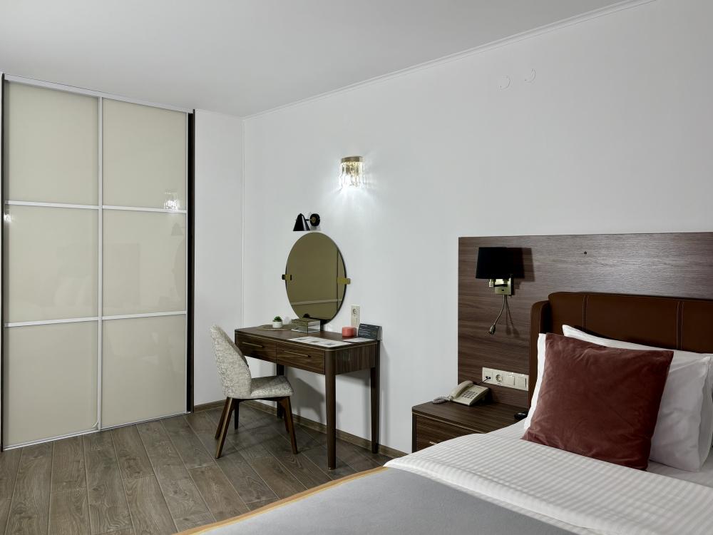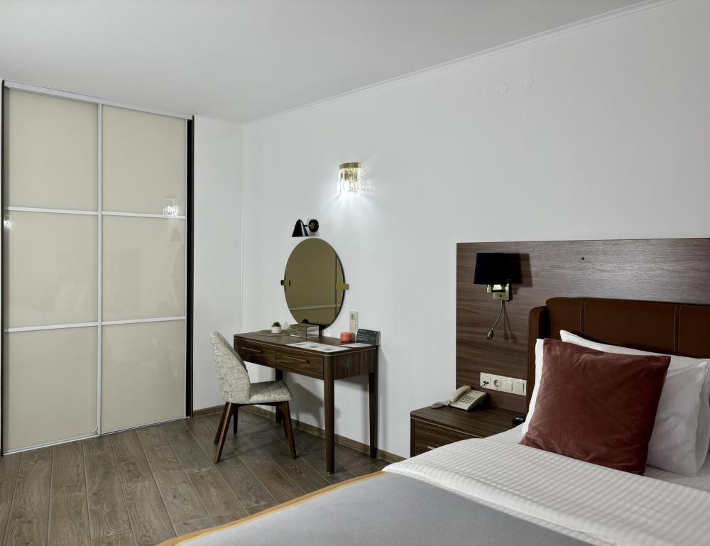 Номера с двуспальной кроватью площадью от 24 до 28 квадратных метров идеально подходят как для индивидуального размещения, так и для проживания вдвоем. Каждый номер оборудован всем необходимым: бесплатный Wi-Fi, кондиционер, цифровое ТВ, надежный сейф, набор для приготовления чая и кофе, бутилированная вода, косметические и другие необходимые принадлежности.