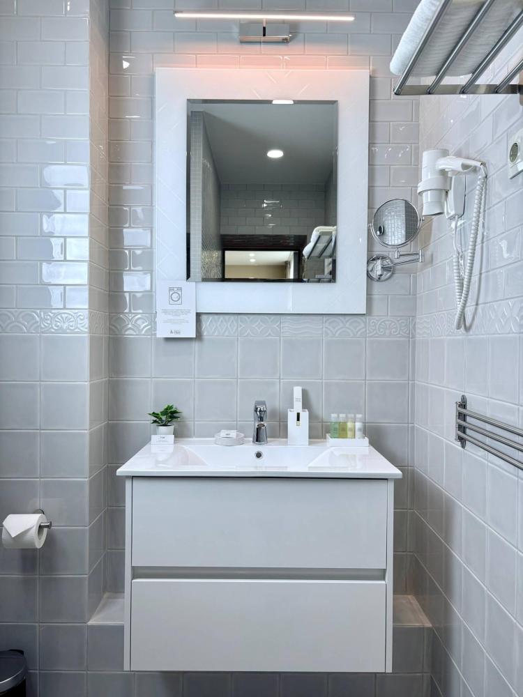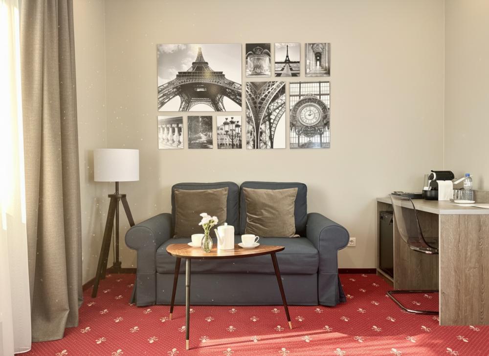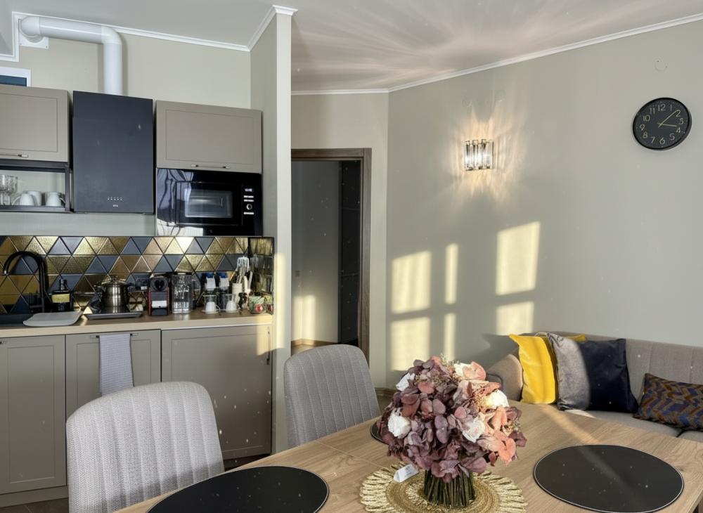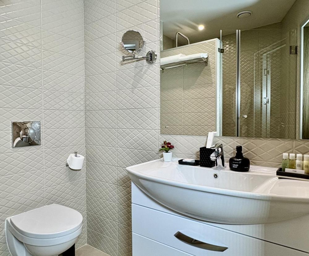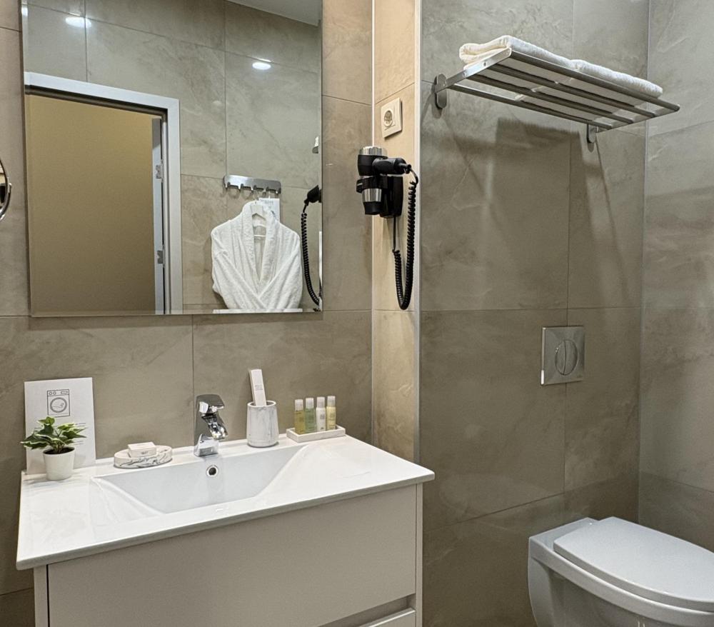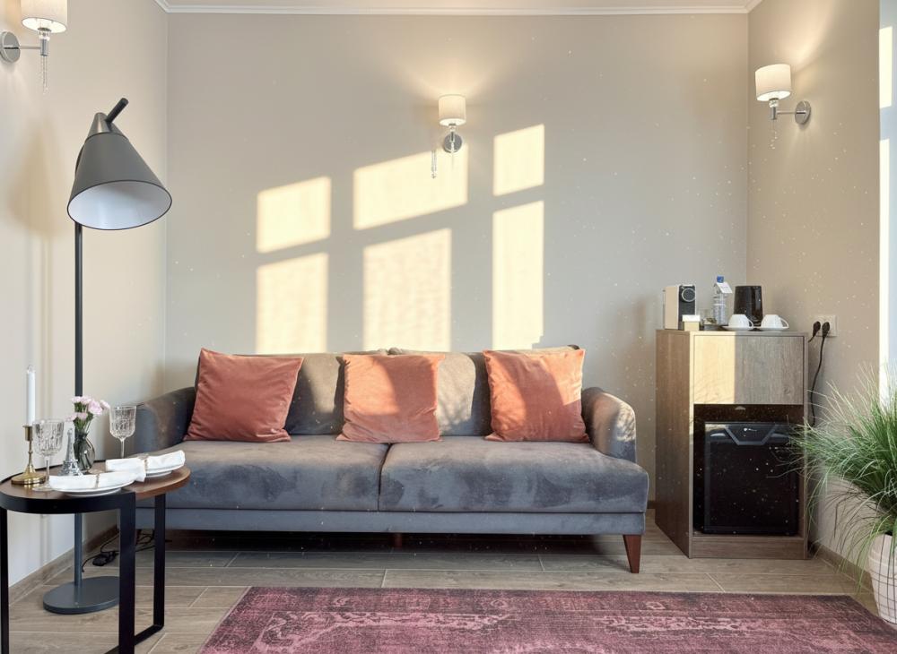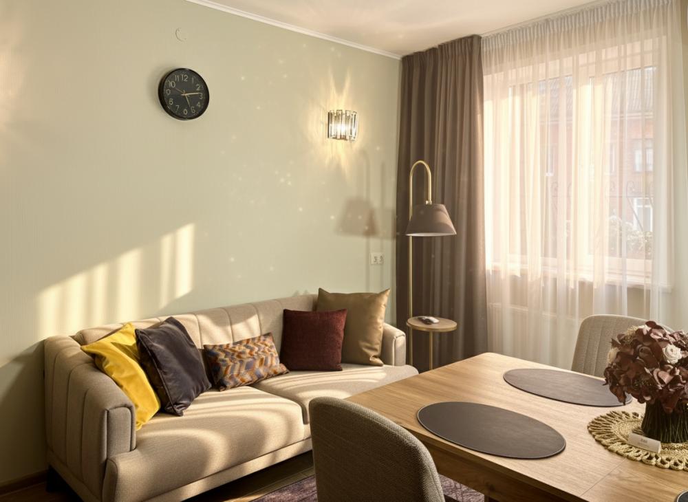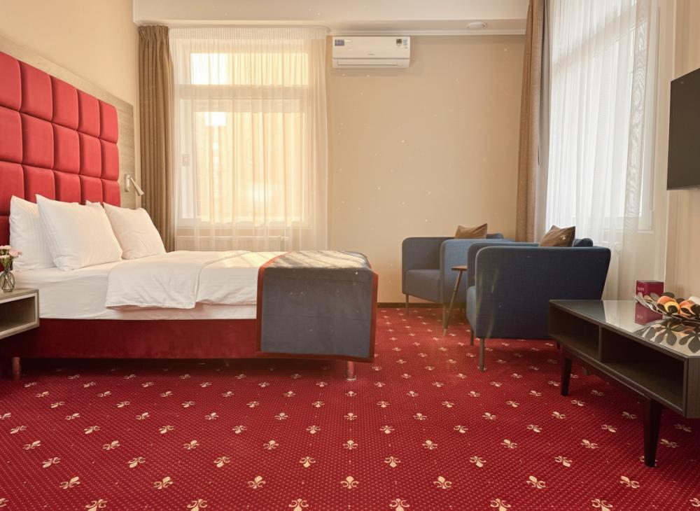 Просторный и роскошный двухкомнатный номер с отдельной гостиной, спальней и просторной ванной комнатой категории АПАРТАМЕНТ. Площадь номера составляет 58 квадратных метров идеально подходят как для индивидуального размещения, так и для проживания вдвоем. Возможно размещение третьего гостя. Интерьер номера продуман до мелочей: здесь вы найдете комфортную зону отдыха с кухней и кофейным уголком, а также функциональное рабочее пространство для деловых задач. Для максимального комфорта гостей номер оборудован всем необходимым: бесплатный Wi-Fi, кондиционер, цифровое ТВ (Smart TV), надежный сейф, набор для приготовления чая и кофе, бутилированная вода, косметические и другие необходимые принадлежности.. Функциональное зонирование номера на прихожую, спальню, гостинную с кухней и рабочее место Большая двуспальная кровать и диван Прикроватные тумбочки Письменный стол и стул Платяной шкаф Сейф Чайная станция, кофемашина Nespresso, наборы чая и кофе Ванная комната с теплым полом, тропическим душем, биде Халат и тапочки, комплект полотенец Фен, набор туалетных принадлежностей Телефон Посудомоечная машина СВЧ печь, инверторная печь Напольные весы Телевизор Кондиционер Мини-бар Яндекс Станция Wi-Fi Шторы blackout
