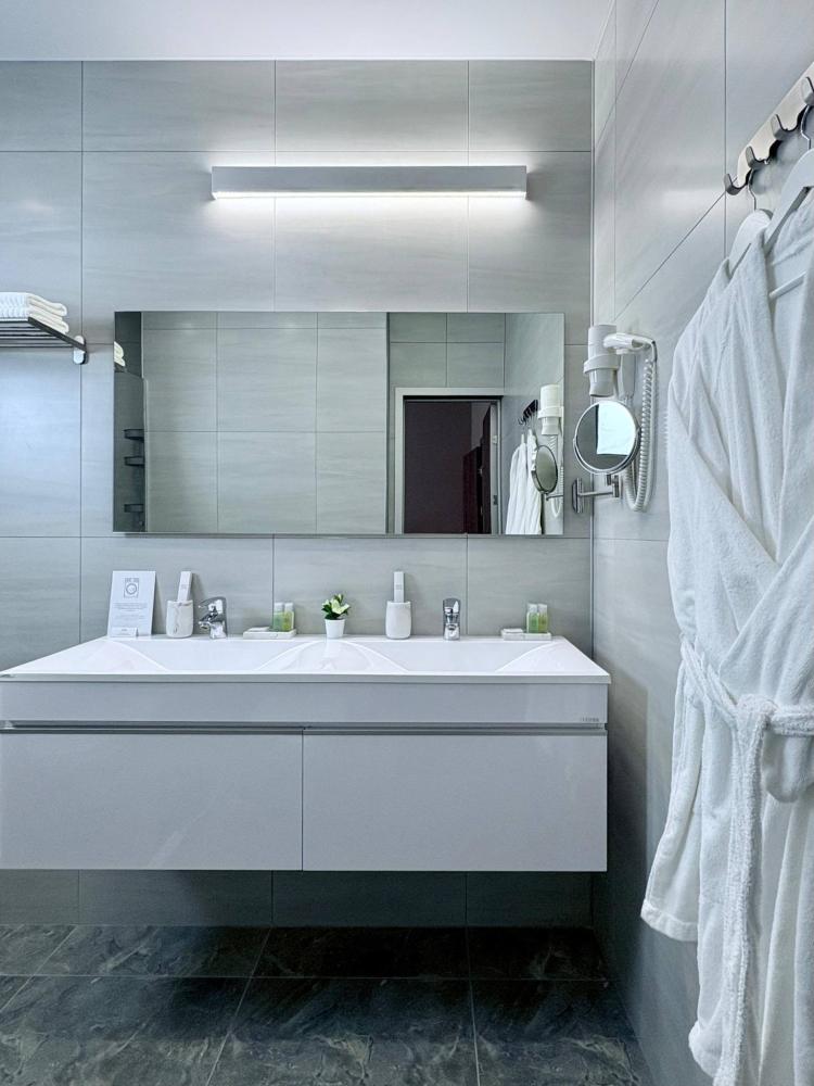 Просторный и роскошный двухкомнатный номер с отдельной гостиной, спальней и просторной ванной комнатой категории АПАРТАМЕНТ. Площадь номера составляет 58 квадратных метров идеально подходят как для индивидуального размещения, так и для проживания вдвоем. Возможно размещение третьего гостя. Интерьер номера продуман до мелочей: здесь вы найдете комфортную зону отдыха с кухней и кофейным уголком, а также функциональное рабочее пространство для деловых задач. Для максимального комфорта гостей номер оборудован всем необходимым: бесплатный Wi-Fi, кондиционер, цифровое ТВ (Smart TV), надежный сейф, набор для приготовления чая и кофе, бутилированная вода, косметические и другие необходимые принадлежности.. В номере: Функциональное зонирование номера на прихожую, спальню, гостинную с кухней и рабочее место Большая двуспальная кровать и диван Прикроватные тумбочки Письменный стол и стул Платяной шкаф Сейф Чайная станция, кофемашина Nespresso, наборы чая и кофе Ванная комната с окном, теплым полом, тропическим душем, биде Халат и тапочки, комплект полотенец Фен, набор туалетных принадлежностей Телефон Телевизор Кондиционер Мини-бар Яндекс Станция Wi-Fi Шторы blackout Забронировать номер можно несколькими способами: направить заявку на электронный адрес welcome@hotel-deparis.com позвонить по телефону +7 (342) 258-08-59 воспользоваться удобной системой онлайн-бронирования hotel-deparis.com/booking Наши администраторы готовы помочь Вам в организации комфортного проживания.