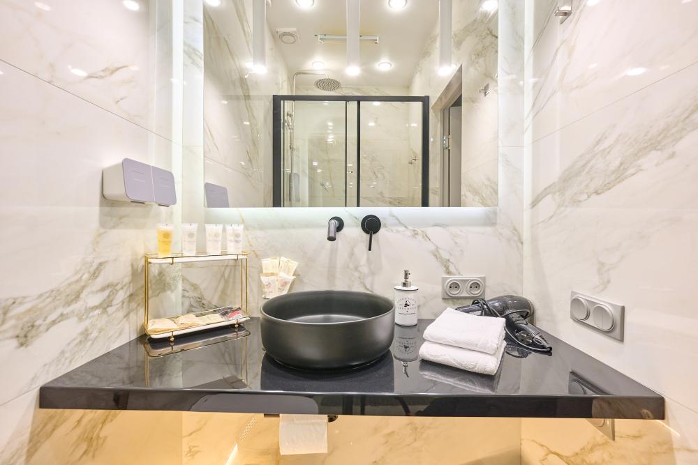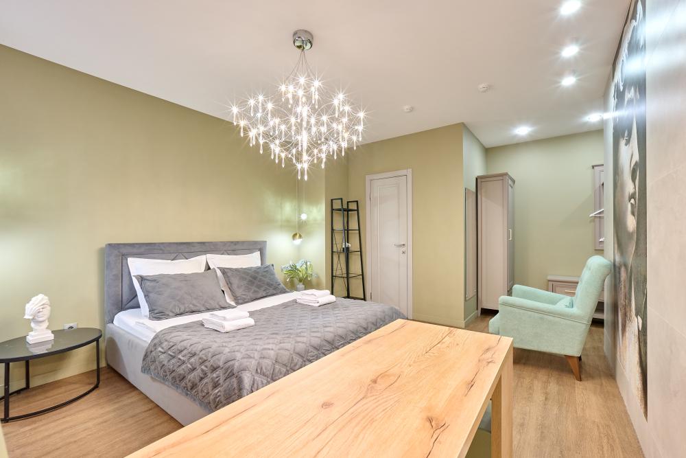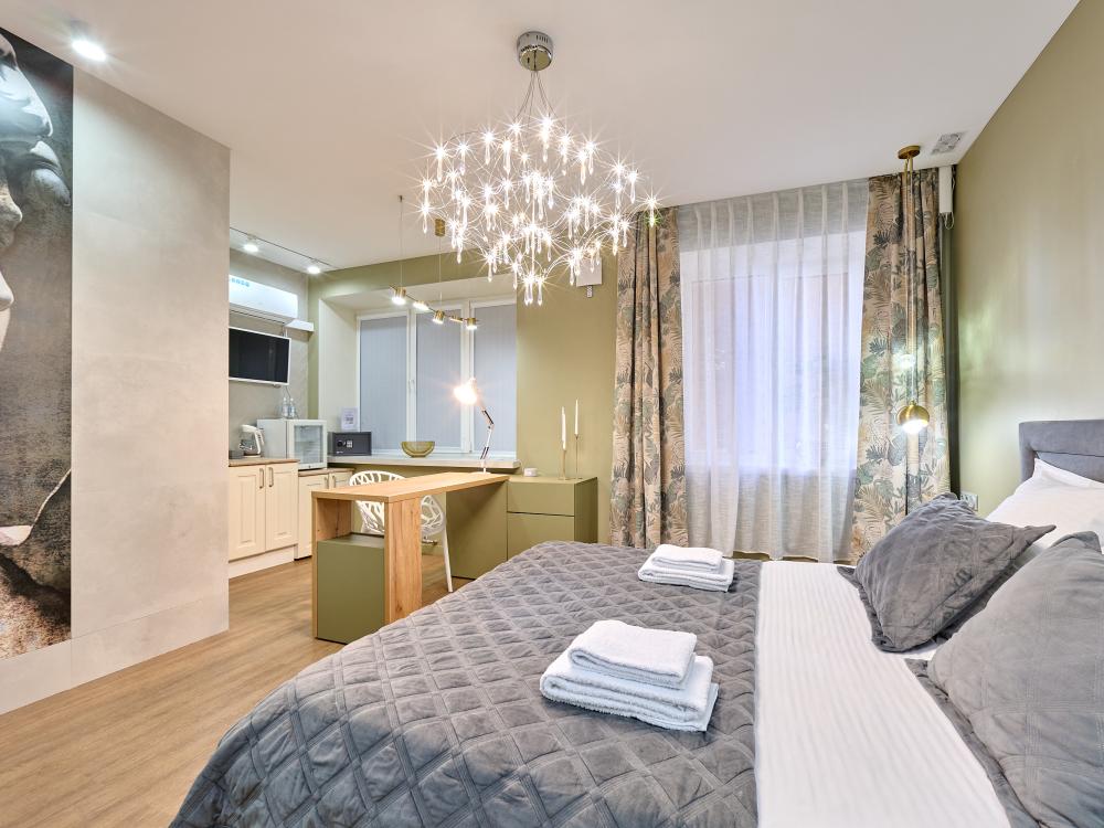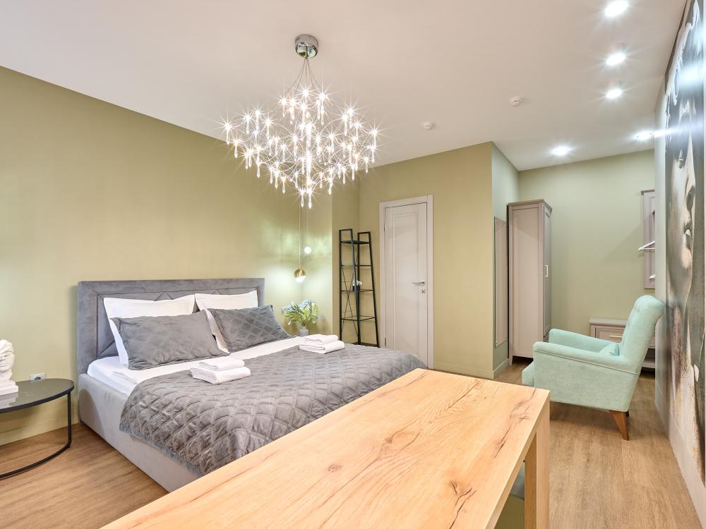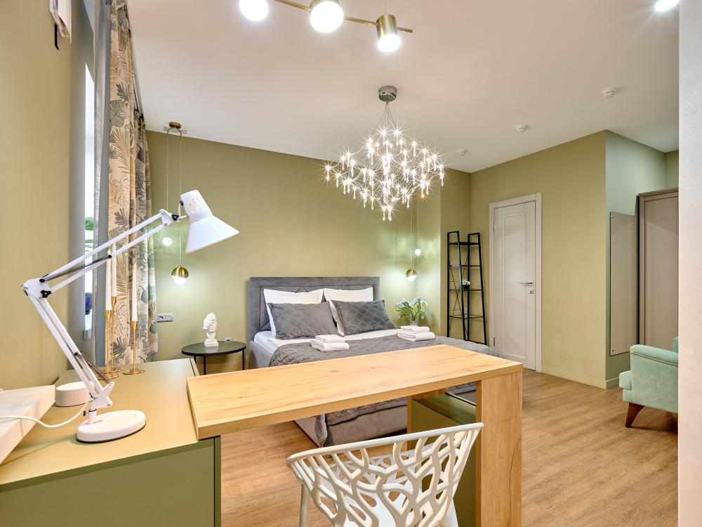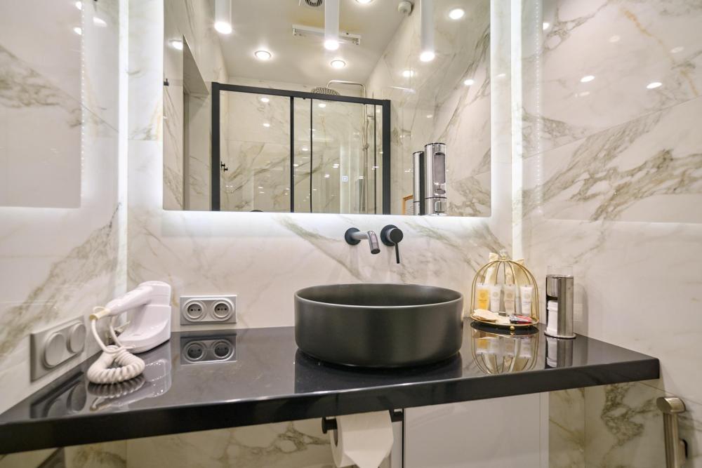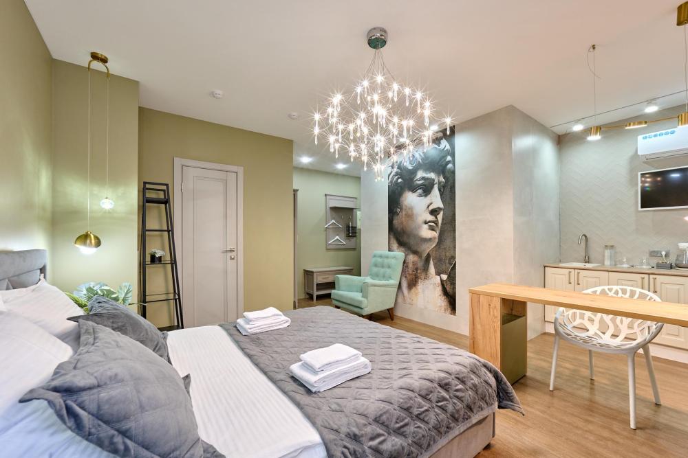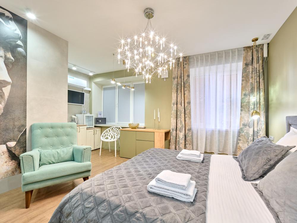 Проведите уикенд в роскошном номере категории «Улучшенный номер с кроватью размера «king-size»» Насладитесь простором и уютом в номере площадью 27 квадратных метров, где Вас ожидает удобная кровать шириной 160 сантиметров, с ортопедическим матрасом, белоснежное, гипоаллергенное хлопковое белье. В вашей собственной ванной комнате вы найдете: - Многофункциональную душевую кабину - Туалет - Шампунь, гель для душа, жидкое мыло, кондиционер, лосьон для тела, зубной и бритвенная принадлежности, расческа, губка для обуви - Три мягких полотенца - Одноразовые тапочки В номере также имеются следующие удобства: - Кондиционер - Высокоскоростной Wi-Fi - Рабочий стол - Телевизор с плоским экраном - Графин с водой - Электрический чайник, чашки для чая, чай и сахар - Напольная вешалка для удобного хранения одежды Не упустите свой шанс почувствовать роскошь и комфорт в номере категории «Делюкс Премиум». Забронируйте сейчас и проведите незабываемое время у нас!