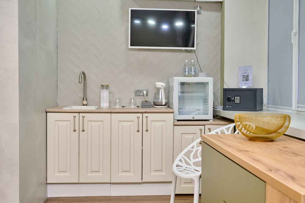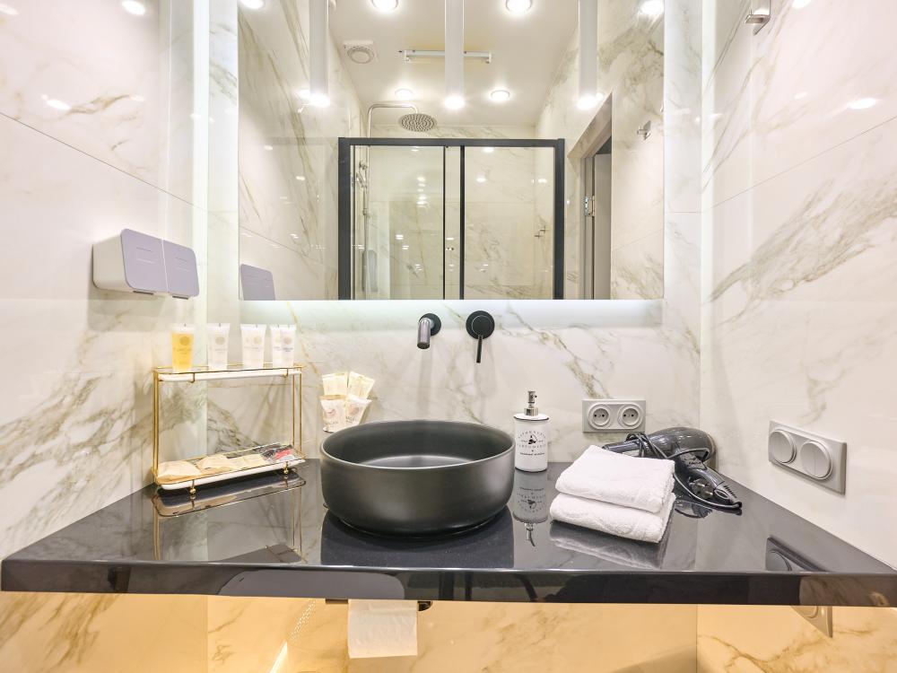 Двухместный Премиум , завтрак включен в стоимость номера Санузел находится рядом с номером Добро пожаловать в наш номер площадью 17 м² с широкой, двухспальной кроватью Kingsize шириной 160см, ортопедическим матрасом и белоснежным хлопковым белье из страйп-сатина. Здесь вы найдете все, что нужно для комфортного и приятного проживания. -Высокоскоростной Wi-Fi -Кондиционер -Спутниковое ТВ -Рабочий стол, стул - Чайная зона с электрическим чайником, чайной парой, чай, сахар -Вода в графине, стаканы -Вешалка напольная -Теплый махровый халат -Мягкие полотенца 3шт -Тапочки одноразовые В номере также предоставлены все необходимые средства гигиены: гель для душа, шампунь, жидкое мыло, кондиционер, лосьон для тела, расческа, зубной и бритвенные наборы, губка для обуви. - Ростовое зеркало Из номера Вам откроется панорамный вид на центральную улицу города и липовую аллею. Парковка: Бесплатная Курение: запрещено Наш отель готов предложить вам все, что необходимо для приятного пребывания.
