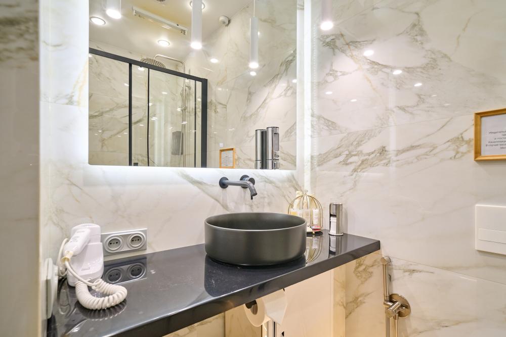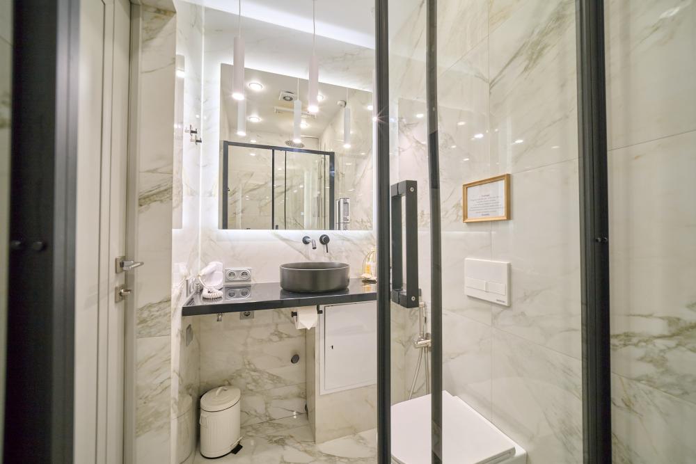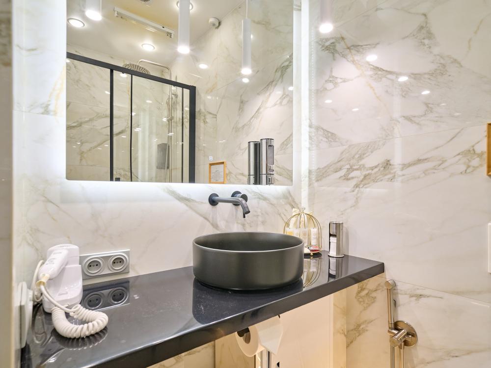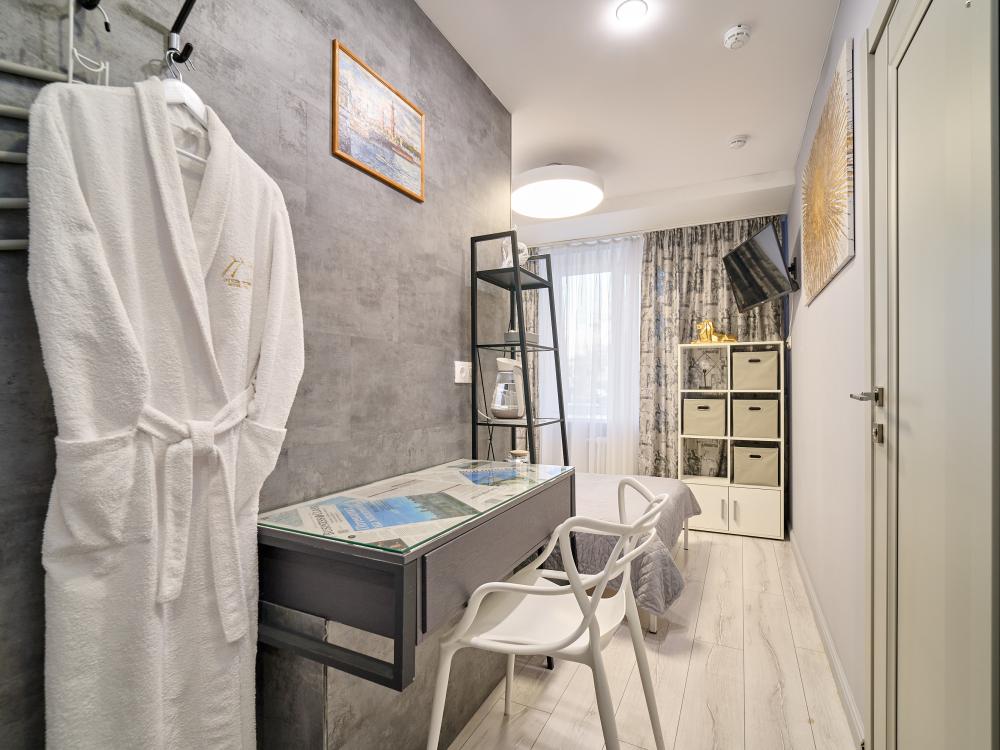 Улучшенный одноместный номер Добро пожаловать в наш номер площадью 10 м² с удобной кроватью шириной 120см с ортопедическим матрасом, белым, гипоаллергенным постельным бельем из страйп сатина. С собственной ванной комнатой. Здесь вы найдете все, что нужно для комфортного и приятного проживания: -Высокоскоростной Wi-Fi -Кондиционер -Вода в графине, стаканы Электрический чайник, чайная пара, чай, сахар -Телевизор с плоским экраном -Вешалка напольная -Зеркало -Халат - Полотенца 3шт - отпариватель для одежды -Расширенный гигиенический набор: гель для душа, шампунь, жидкое мыло, кондиционер, лосьон для тела, расческа, зубной и бритвенные наборы, губка для обуви -Тапочки одноразовые Курение: запрещено Парковка: Бесплатная Будем рады принять Вас в нашем отеле!