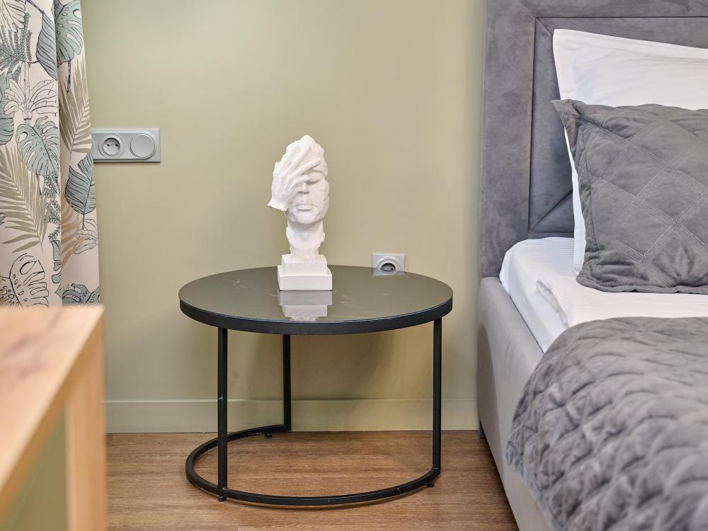 Номер с кроватью размера «king-size», завтрак включен в стоимость номера Санузел находится рядом с номером Мы рады приветствовать Вас в нашем комфортном и уютном однокомнатном номере 20 м². Вас ожидает двухспальная кровать Kingsize, ортопедический матрас и белоснежное, хлопковое страйп-сатиновое белье, которое обеспечит вам ощущение роскоши. В номере для Вас доступны: -Высокоскоростной Wi-Fi -Кондиционер -Спутниковое ТВ -Рабочий стол, стул - Чайная зона с электрическим чайником, чайной парой, чай, сахар -Вода в графине, стаканы -Вешалка напольная -Теплый махровый халат -Мягкие полотенца 3шт -Тапочки одноразовые -Расширенный гигиенический набор: гель для душа, шампунь, жидкое мыло, кондиционер, лосьон для тела, расческа, зубной и бритвенные наборы, губка для обуви. Из номера Вам откроется панорамный вид на центральную улицу города и липовую аллею. Парковка: Бесплатная Курение: запрещено Будем рады принять Вас в нашем отеле!