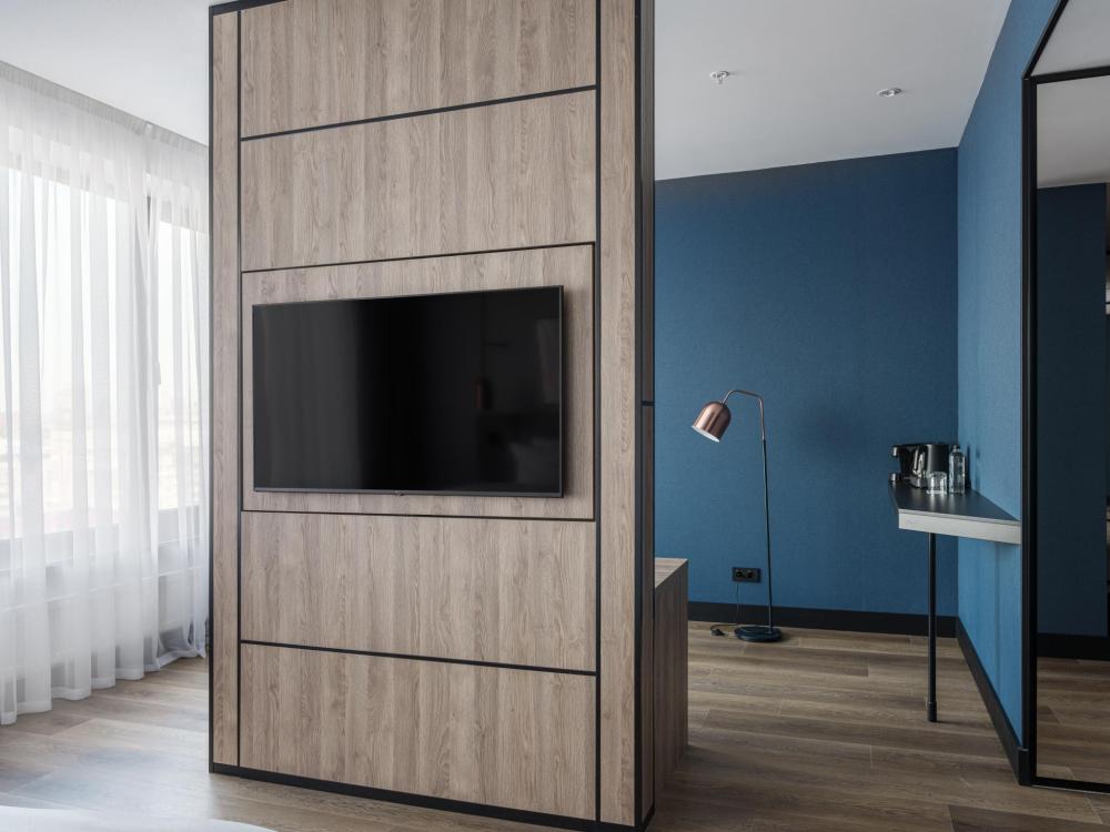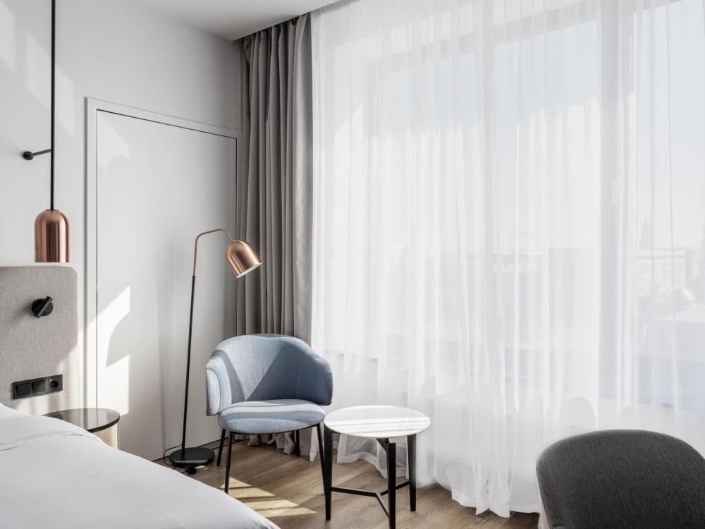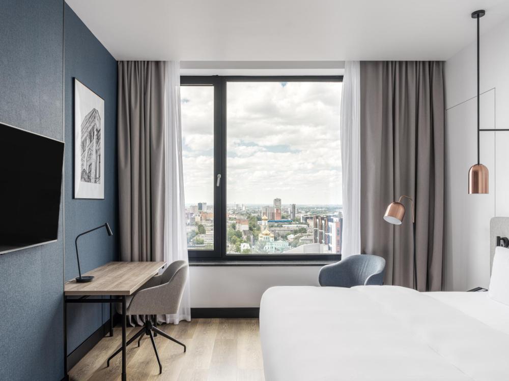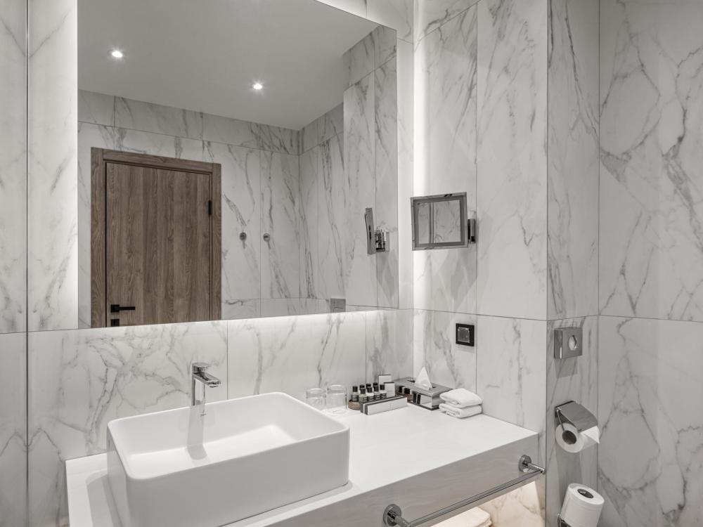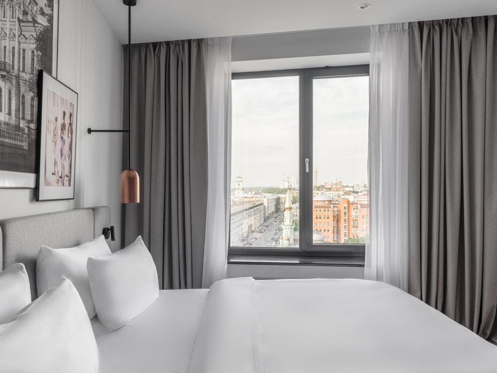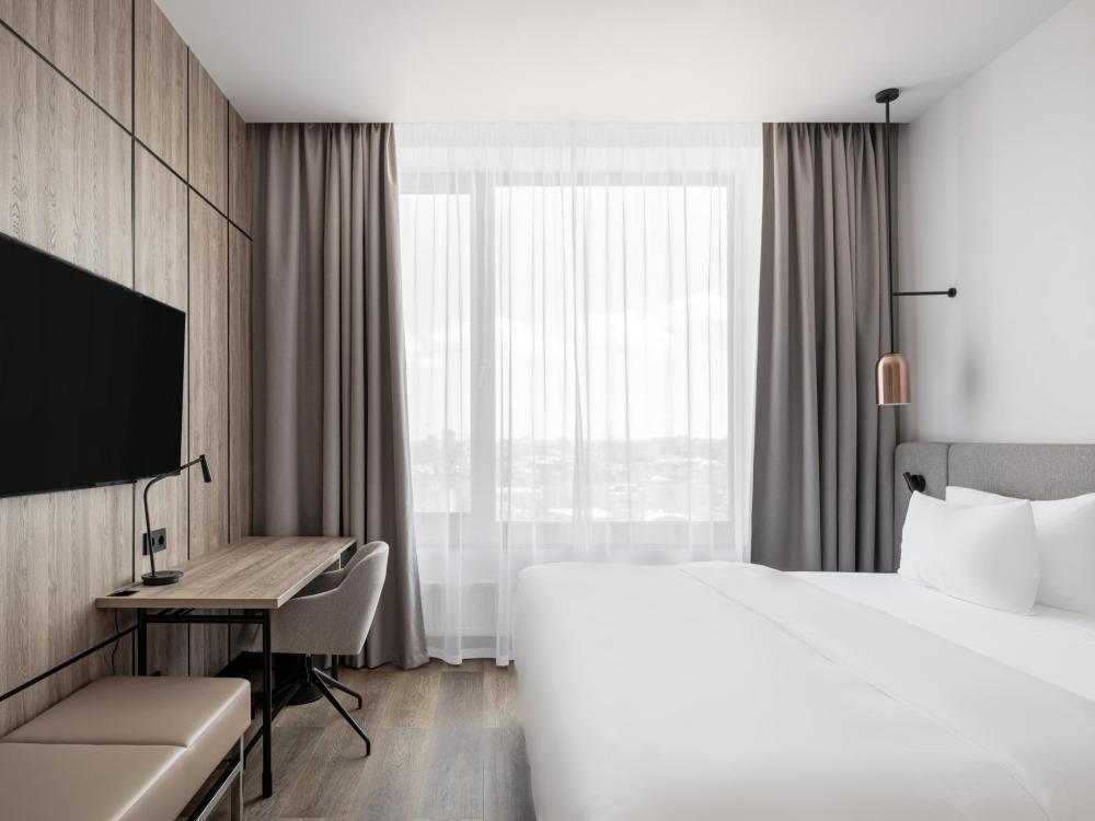 Номер с панорамным видом категории Улучшенный, оборудованный всем необходимым для комфортного проживания. В номере: двуспальная или две односпальные кровати, телевизор, рабочее место, чайная станция, современный санузел с душем. В номере доступно дополнительное место.