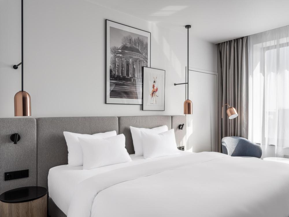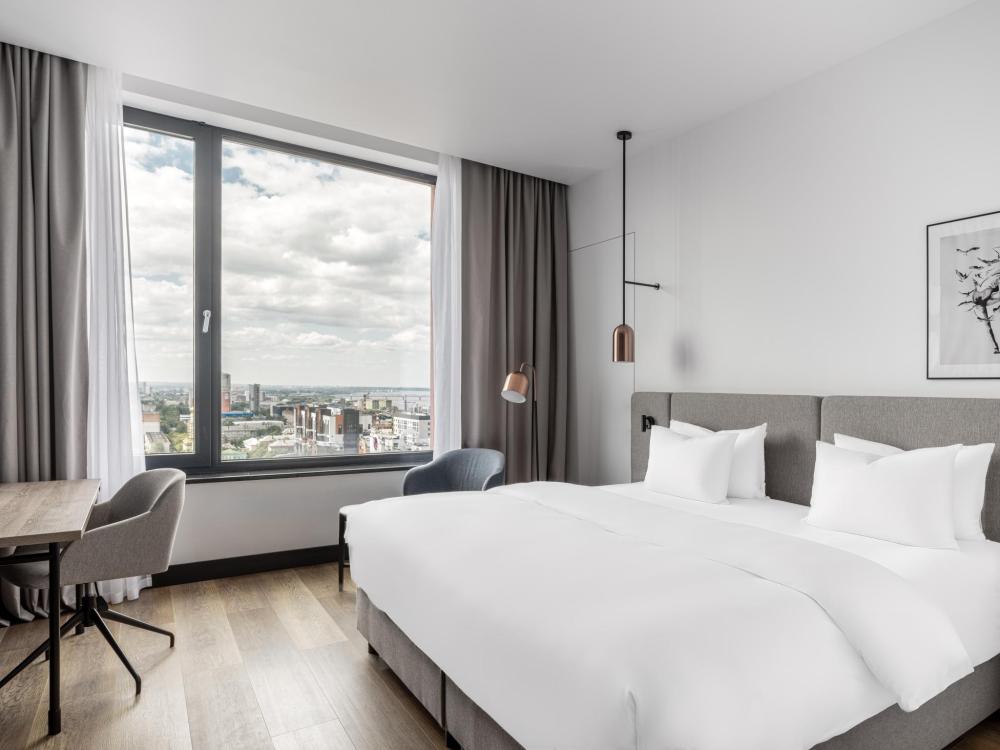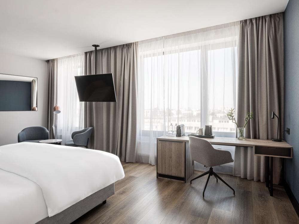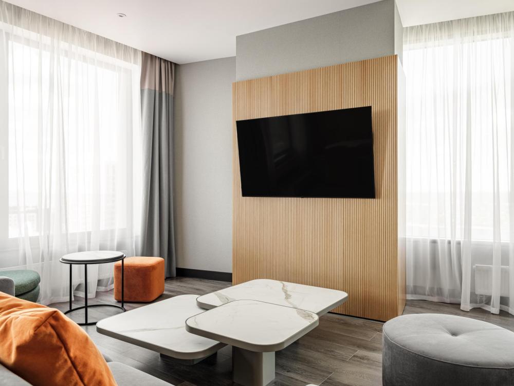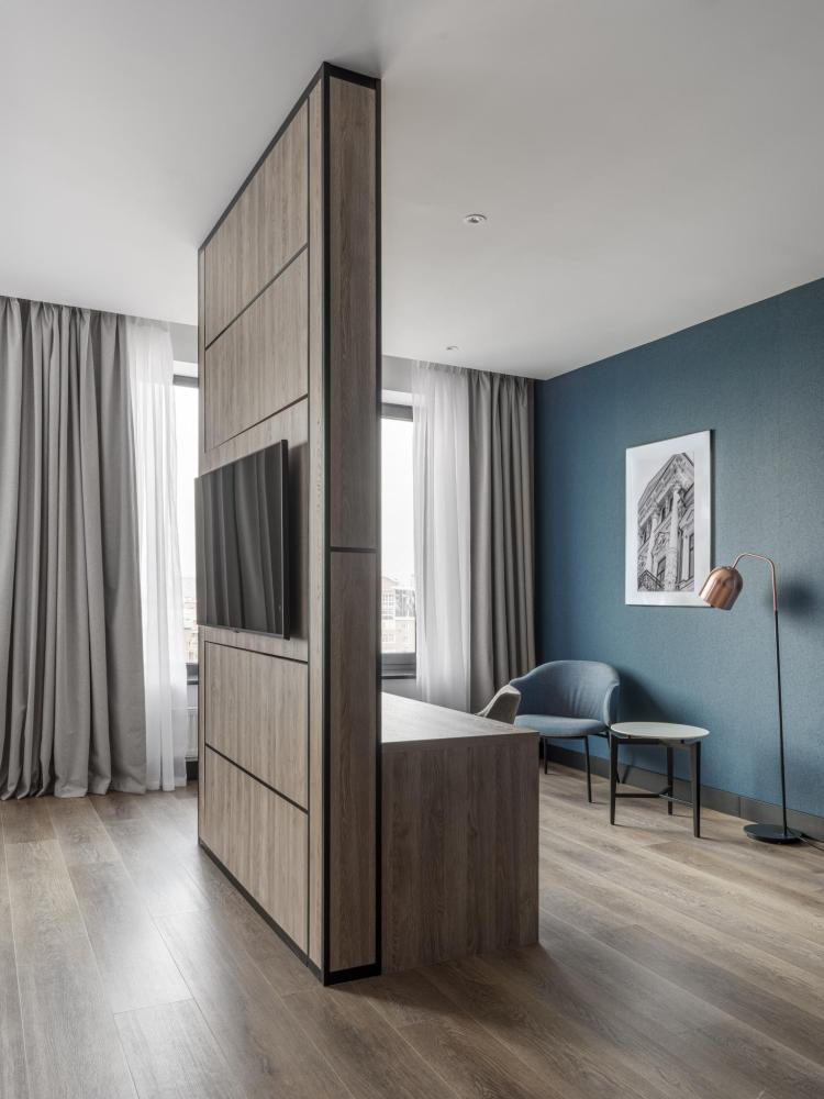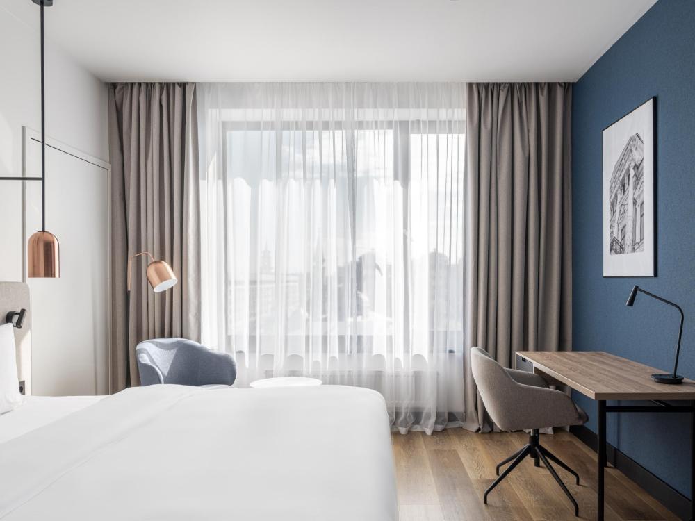 Номер с панорамным видом категории Улучшенный, оборудованный всем необходимым для комфортного проживания. В номере: двуспальная или две односпальные кровати, телевизор, рабочее место, чайная станция, современный санузел с душем. В номере доступно дополнительное место.