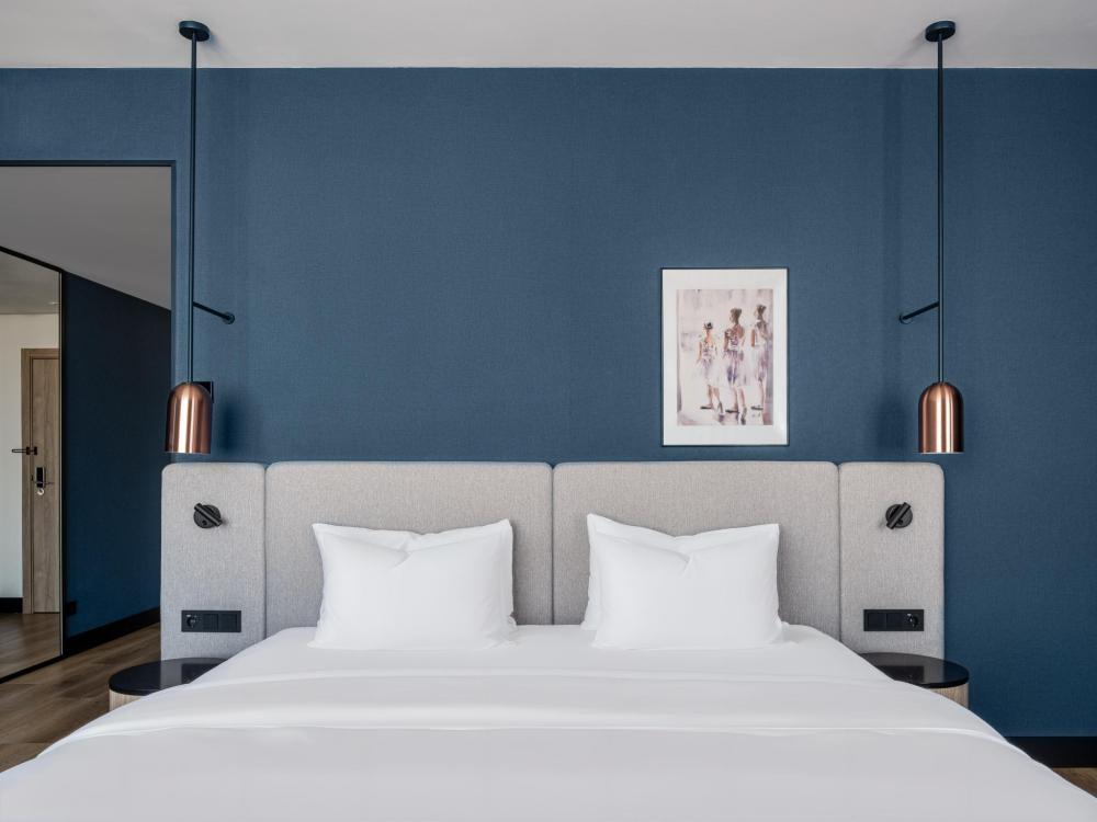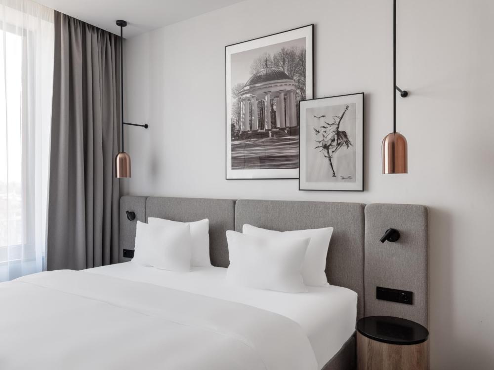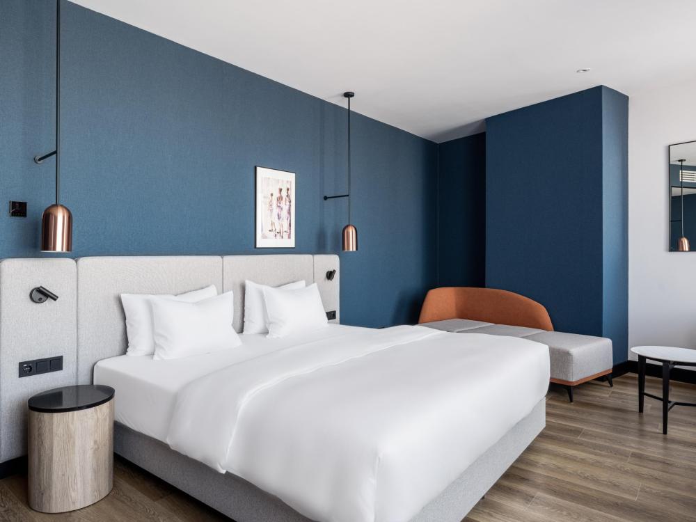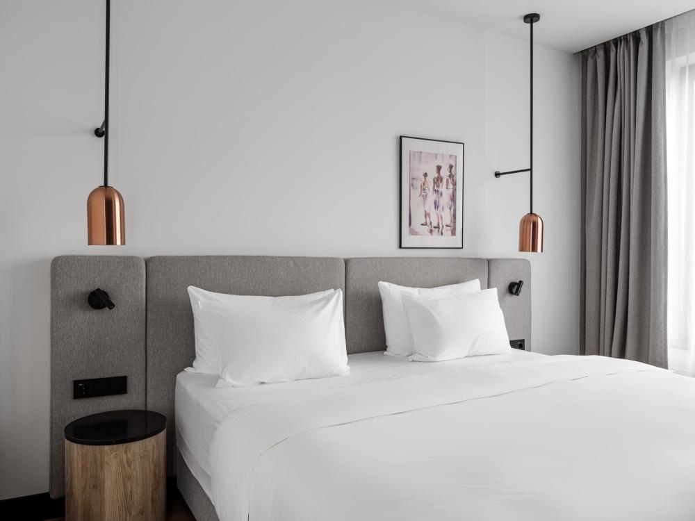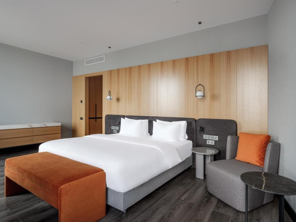 Номер категории Премиум, оборудованный всем необходимым для комфортного проживания В номере: двуспальная или две односпальные кровати, телевизор, зонированное рабочее место, чайная станция, современный санузел с душем. В номере доступно дополнительное место.