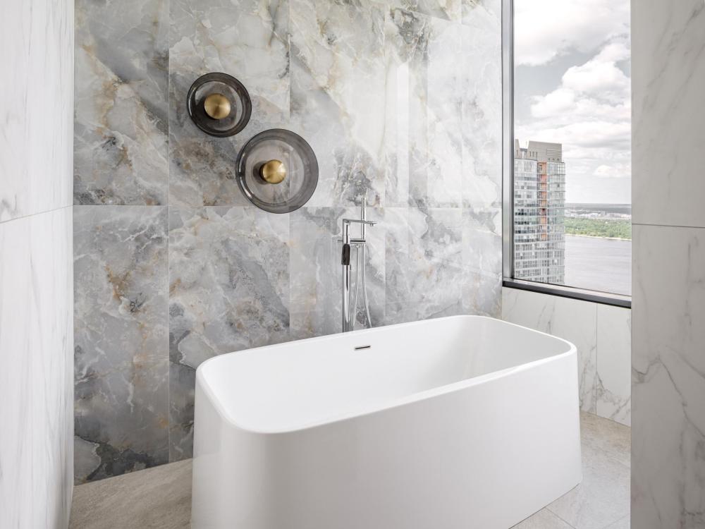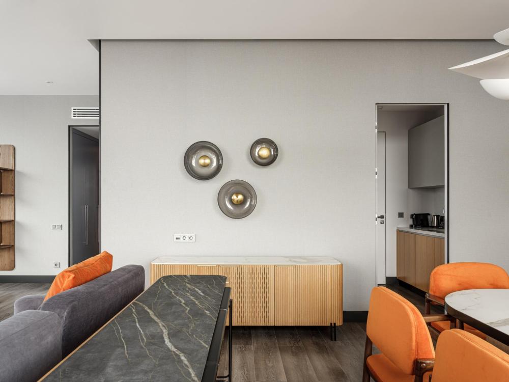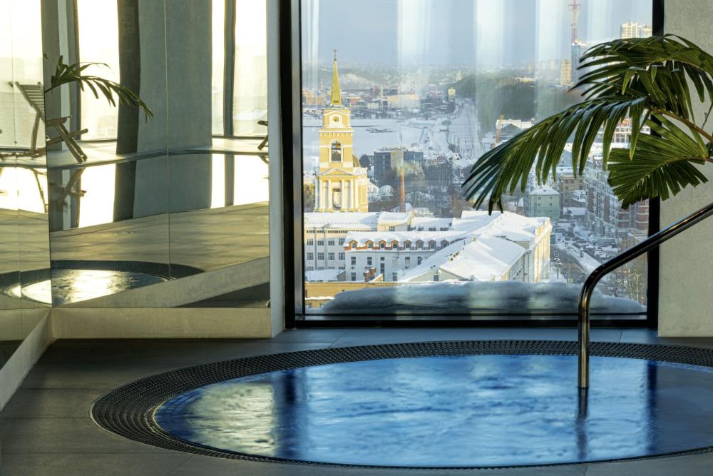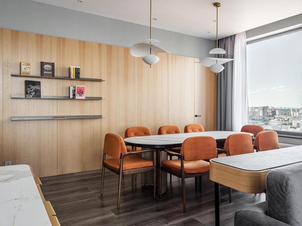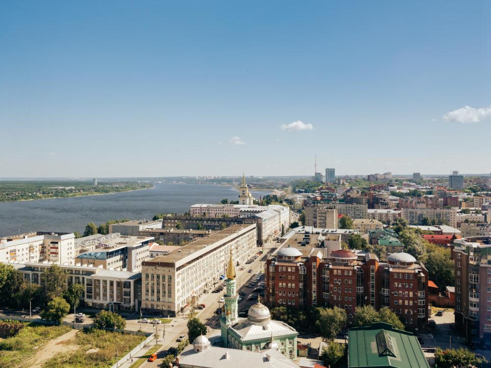 В Президентском люксе из всех комнат и ванной открывается вид на реку Каму. Этот элегантный люкс оформлен в современном скандинавском стиле и обставлен удобной мебелью. Просторный номер включает в себя спальню с двуспальной кроватью, гостиную, обеденную и кухонную зоны, а также современную ванную комнату с панорамными окнами.