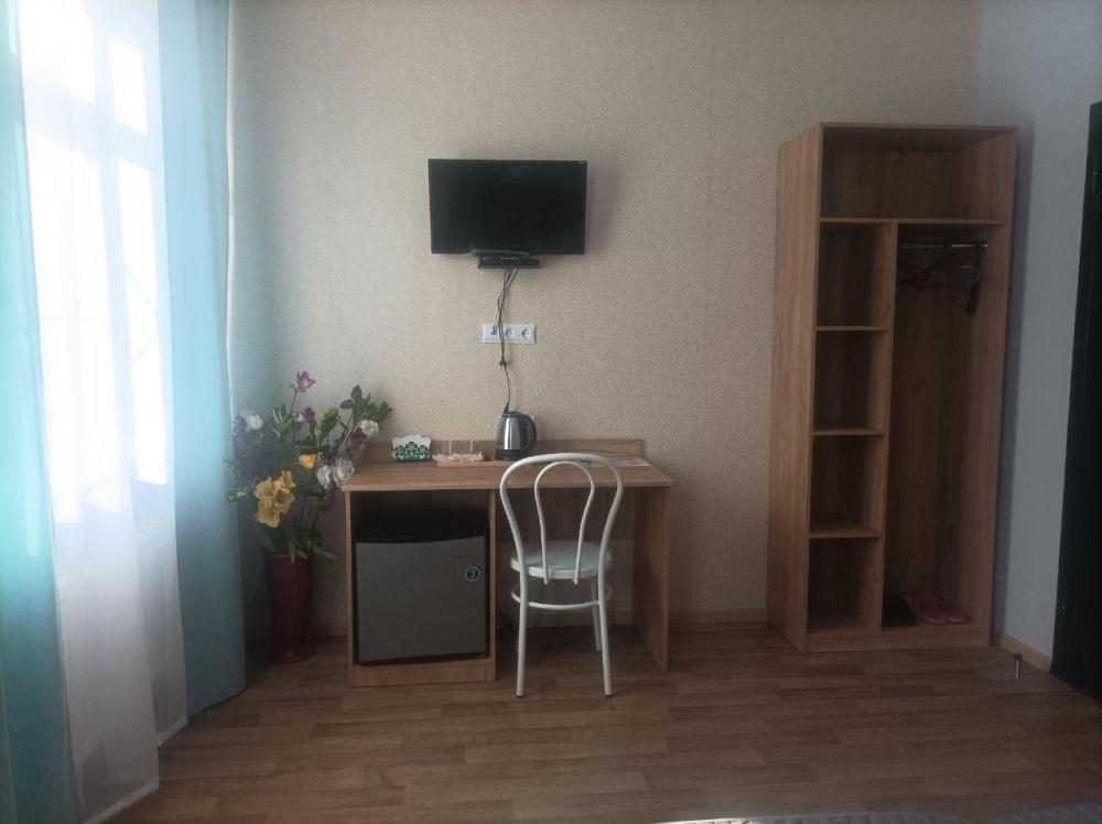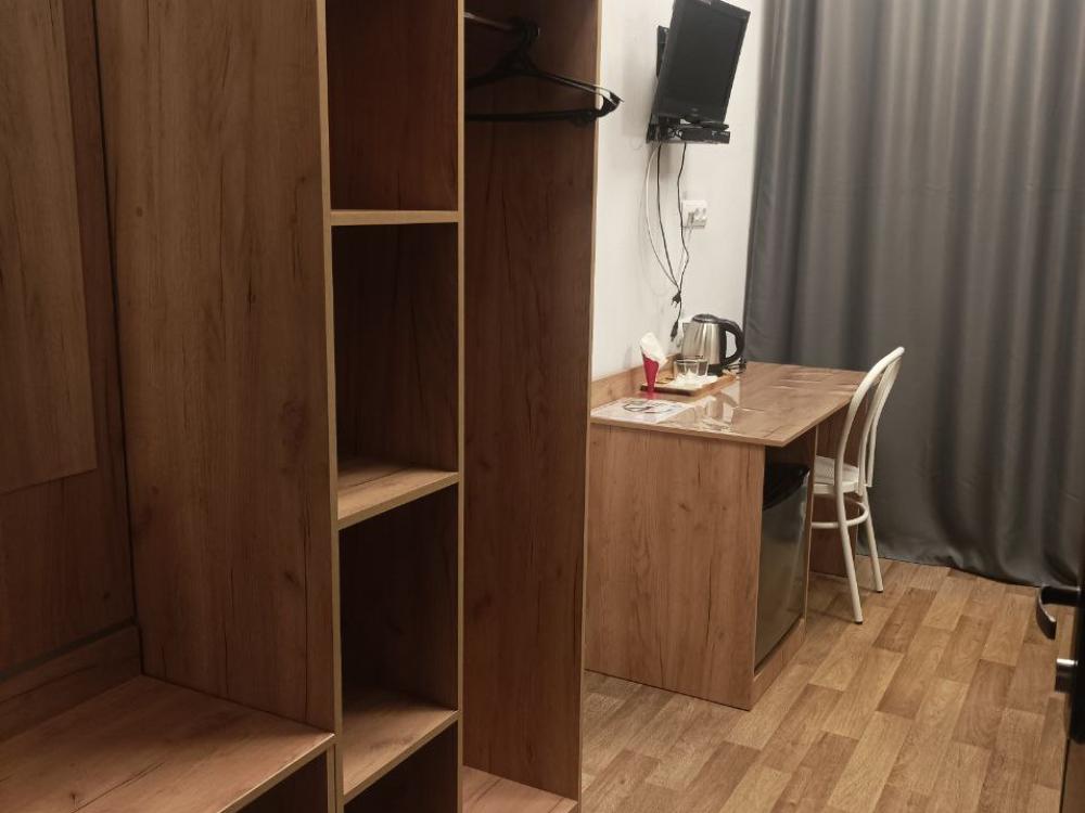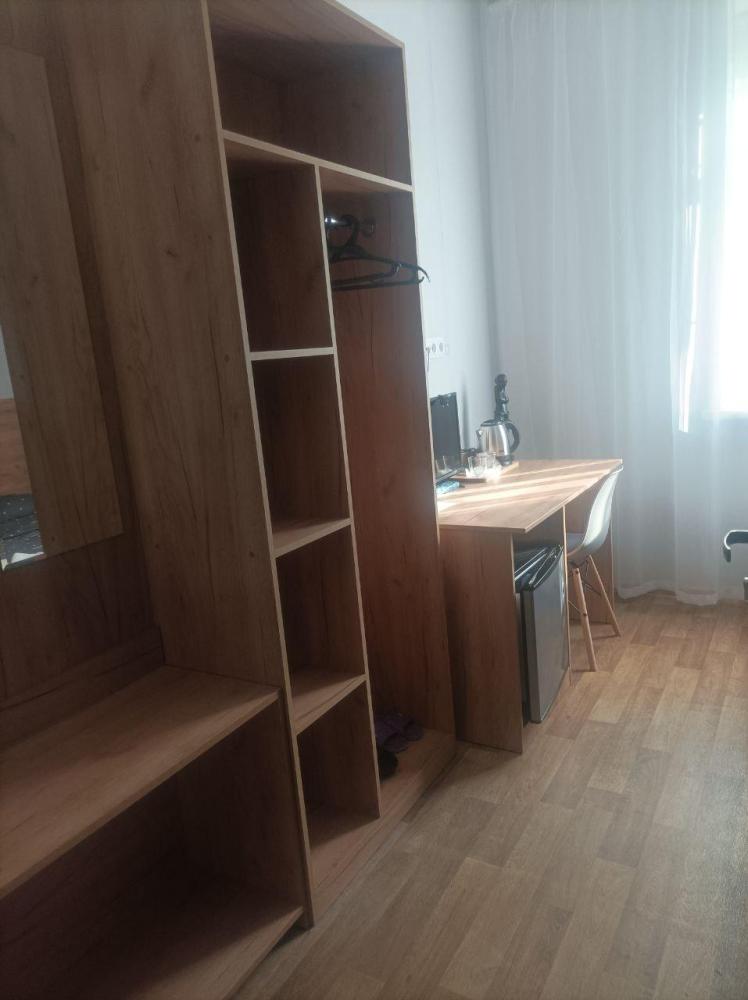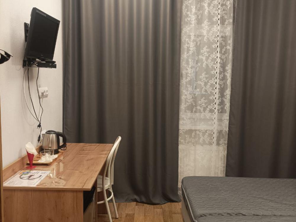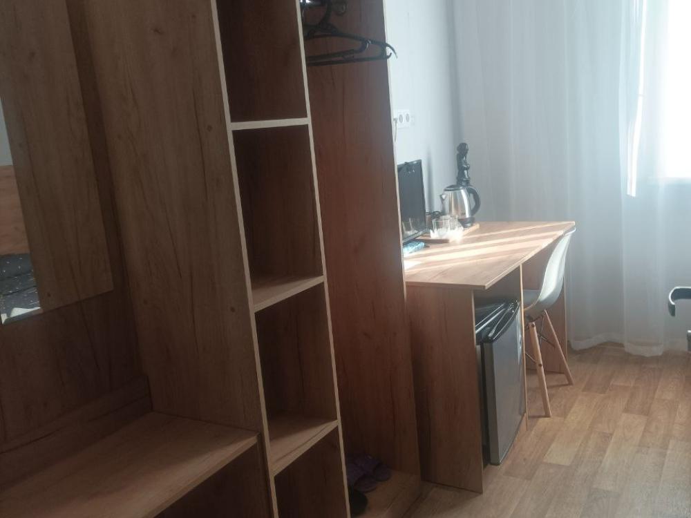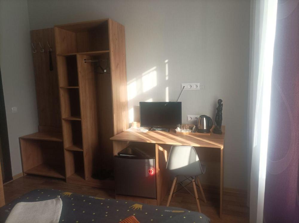 Уютный номер со всем необходимым с большой кроватью или 2 односпальными кроватями. В номере есть холодильник и чайник, письменный стол для комфортной работы.