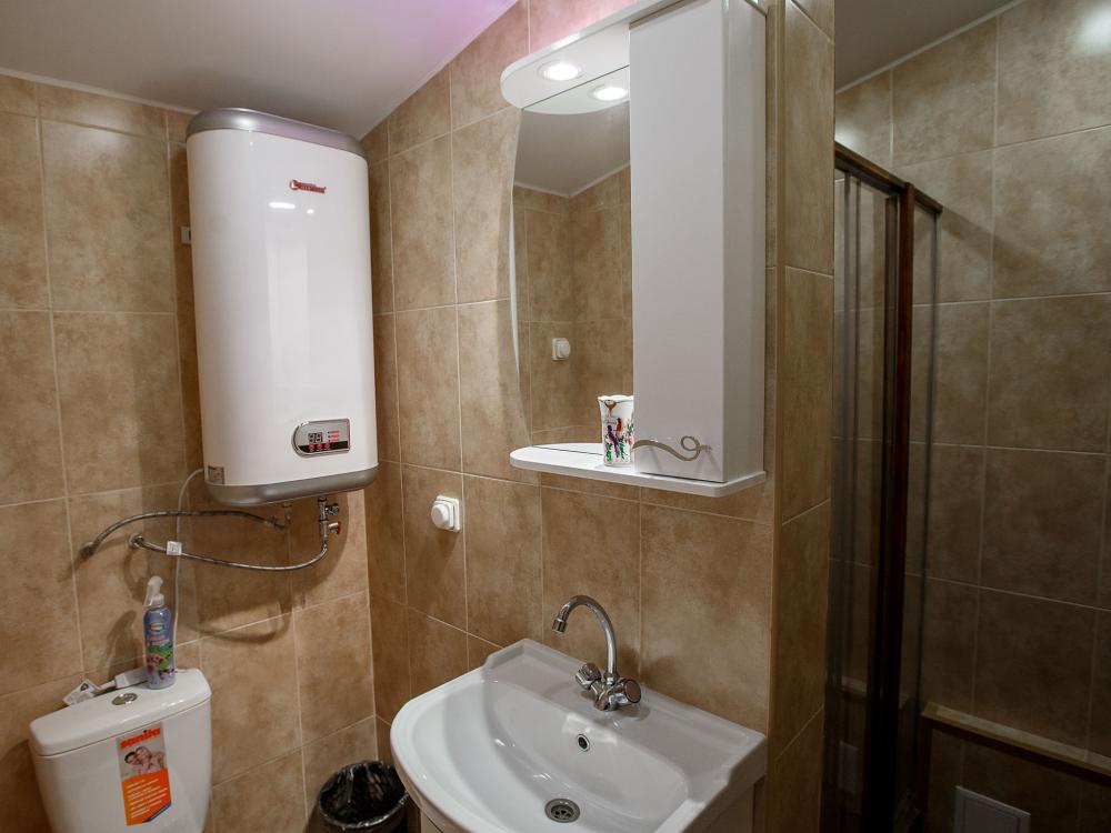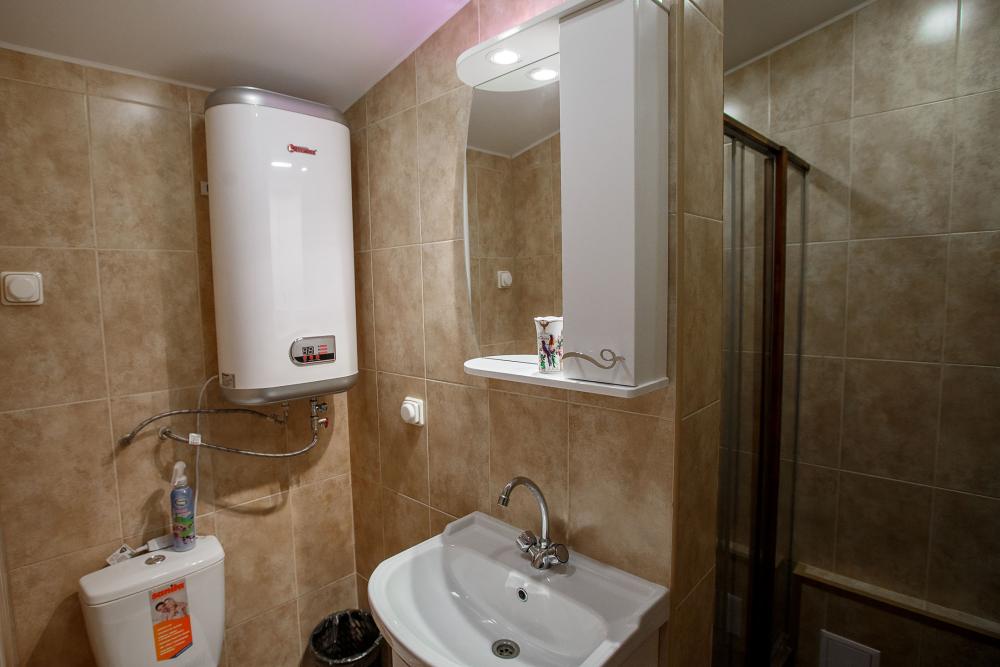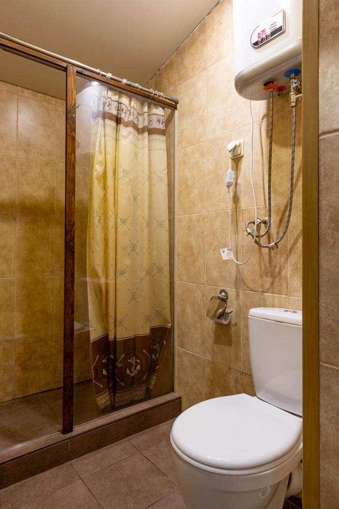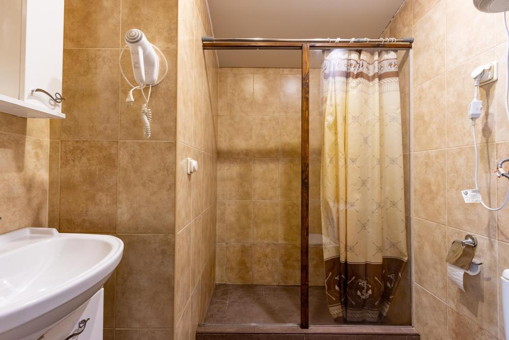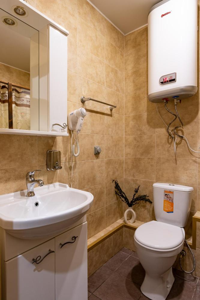 В номере есть две односпальные кровати, письменный стол, стул,шкаф для одежды, телевизор, холодильник, минибар, ванные принадлежности( одноразовые: зубная щетка, зубная паста, шампунь, гель для душа, тапочки), фен, душевая кабина и туалет, утюг и гладильная доска на ресепшене.