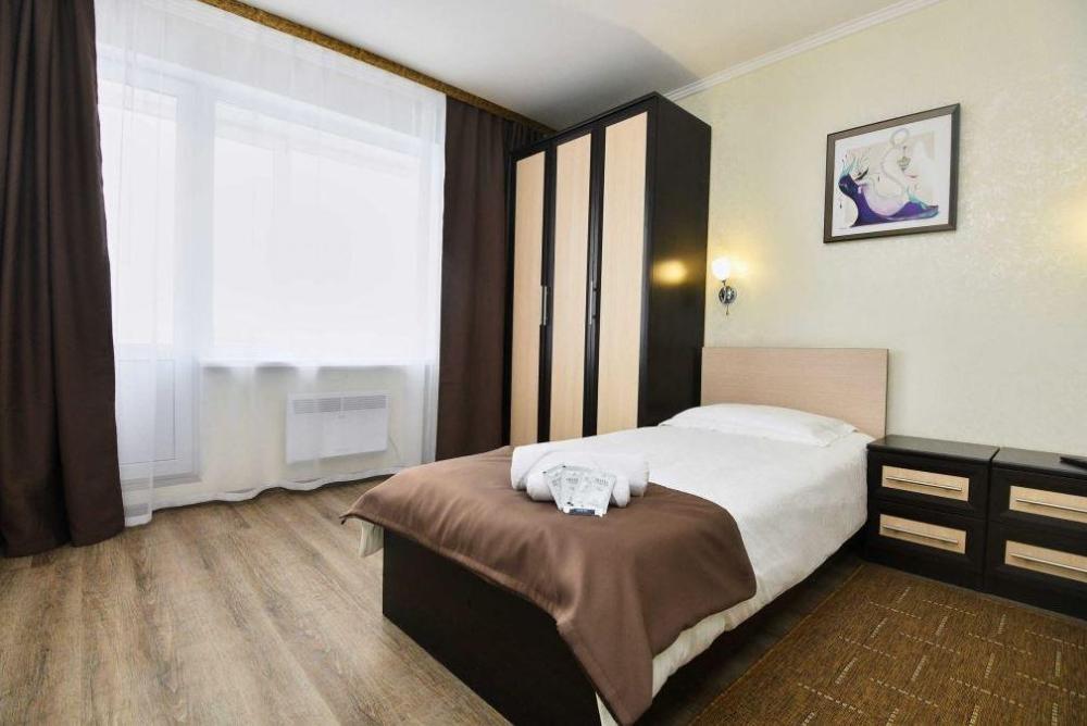 В комнате одна двухспальная кровать (или две односпальные кровати по запросу), шкаф, стол, холодильник, телевизор, индивидуальный сейф, санузел с душевой кабинкой. Качественное постельное белье и комплект полотенец для гостей.