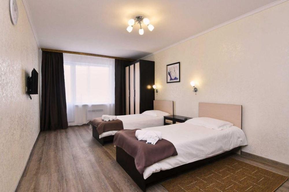 В комнате две односпальные кровати, шкаф, стол, холодильник, телевизор, индивидуальный сейф, санузел с душевой кабинкой. Качественное постельное белье и комплект полотенец для гостей.