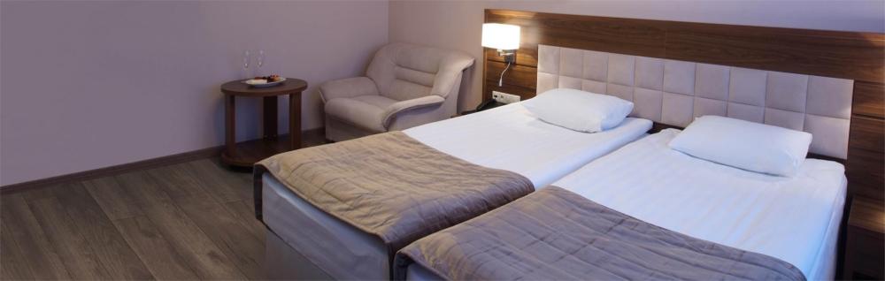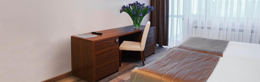 Уютный номер с балконом и прекрасным видом на лес. В номере две односпальные кровати, чайная станция (чайник и набор чайной посуды), мини-холодильник, телевизор, телефон.