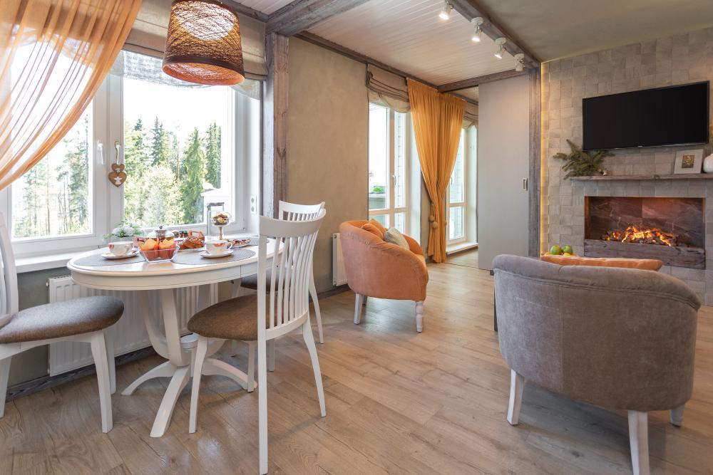Уникальная дизайнерская евродвушка в окружении леса – как загородный дом в городе! Адрес: ул. Софьи Ковалевской, д.16 – район рядом с ТРК «Лотос-Плаза», парком «Зелёный берег» и сквером «Город солнца». Вокруг – хвойный лес, тишина и уют, а до центра – 7–10 минут на машине. Необычный интерьер с камином, имитирующим живой огонь и увлажняющим воздух при помощи парогенератора, деревянными балками, фресками и мебелью ручной работы. Окна в пол, зелёный вид и ощущение жизни в доме, а не в квартире. Отлично подойдёт для отдыха, романтического уикенда, командировки или медитативного уединения. Утепленный балкон, являющийся частью тёплого контура квартиры. Комфорт проживания Уют и стиль: ✔ Двуспальная кровать с новым ортопедическим матрасом и хлопковым бельём ✔ Просторный раскладной диван ✔ Возможность добавить 5-е спальное место (по согласованию) ✔ Балкон утеплён – устроен мини-кабинет Уникальные детали: ✔ Заказной камин с эффектом живого огня ✔ Деревянные потолки и декоративные балки ✔ Фрески с лесным пейзажем на стенах ✔ Ручная мебель и тёплая атмосфера Оборудованная кухня: ✔ Тихий холодильник, варочная панель, СВЧ ✔ Кран с фильтрованной водой ✔ Удобная рабочая поверхность из искусственного камня Для работы и отдыха: ✔ Wi-Fi, Smart TV ✔ Обеденная зона ✔ Пространство для отдыха у камина Санузел: ✔ Ванна, стиральная машина, фен ✔ Гигиенические средства и полотенца Максимальное количество гостей 4 + 1 человек. Имеется кровать (двухместная) и комфортный диван (двухместный)+ при согласовании заранее мягкая качественная раскладушка для 5-ого гостя. Рядом: ✔ ТЦ «Лотос-Плаза» – 10 минут пешком ✔ Продуктовые магазины, аптеки – 5–7 минут ✔ Перинатальный центр, республиканская больница – в шаговой доступности ✔ Удобная развязка: легко добраться в любой район Забронируйте сейчас и почувствуйте уют, как в загородном доме, не покидая город! ____________________________________ Сеть квартир краткосрочной аренды «Здесь хорошо!» – ваш дом вдали от дома.