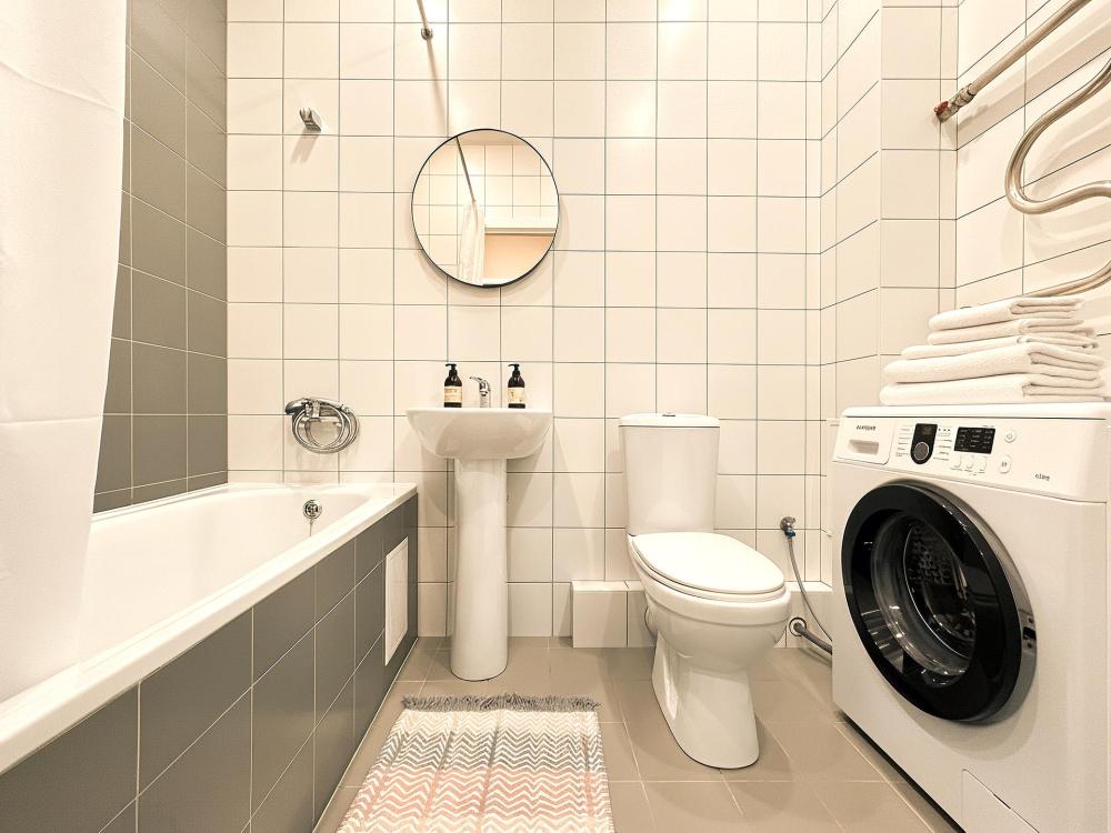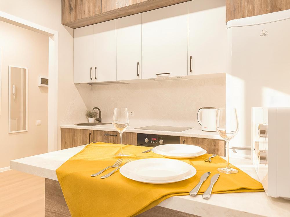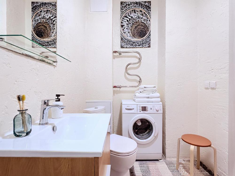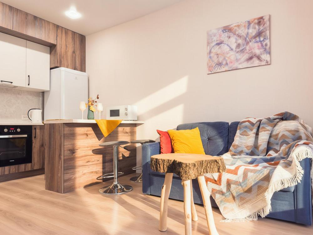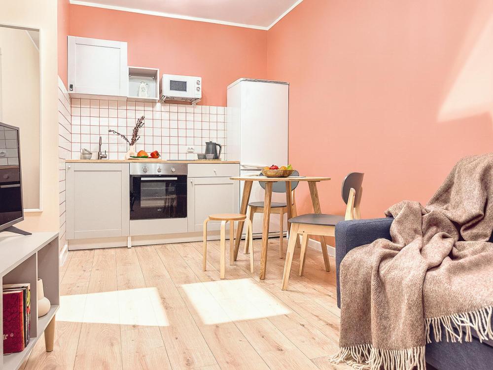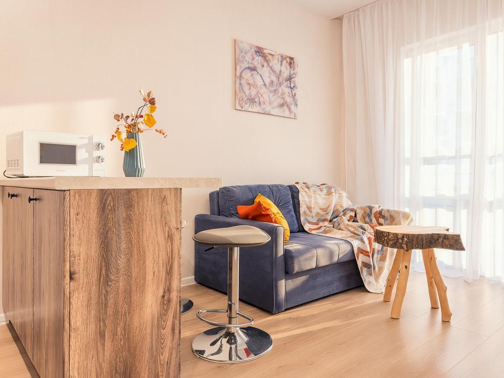В квартире имеется новая техника, включая стиральную машину, электрическую плиту, холодильник и микроволновую печь. Кроме того, квартира оформлена в эксклюзивном стиле с авторским декором, создавая уютную и стильную атмосферу. Спальные места обеспечат максимальный комфорт. Двуспальная кровать размером 160 см и двуспальный диван размером 140 см обеспечат вам приятный сон. Все постельные принадлежности, включая удобные подушки и приятные одеяла, будут предоставлены.