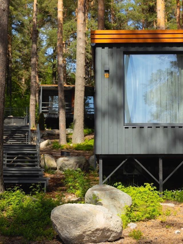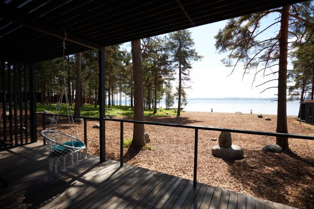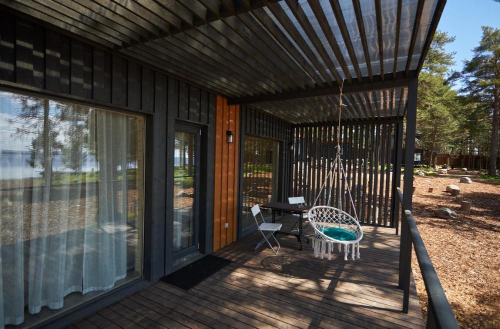 Комфортный гостевой домик для двоих 18м2, с панорамным видом на Онежское озеро и сосны. Домик на первой береговой линии, до 100 метров от берега. В каждом домике есть: двуспальная кровать (с возможностью разделения спальных мест); кухня со всем необходимым (маленький холодильник, чайник, плита с одной конфоркой, микроволновка, посуда для приготовления и приема пищи); санузел с горячим душем и туалетом; небольшой Smart TV и wi-fi; кондиционер; терраса с уличной мебелью и качелью; мангал с шампурами и решеткой на территории каждого домика.