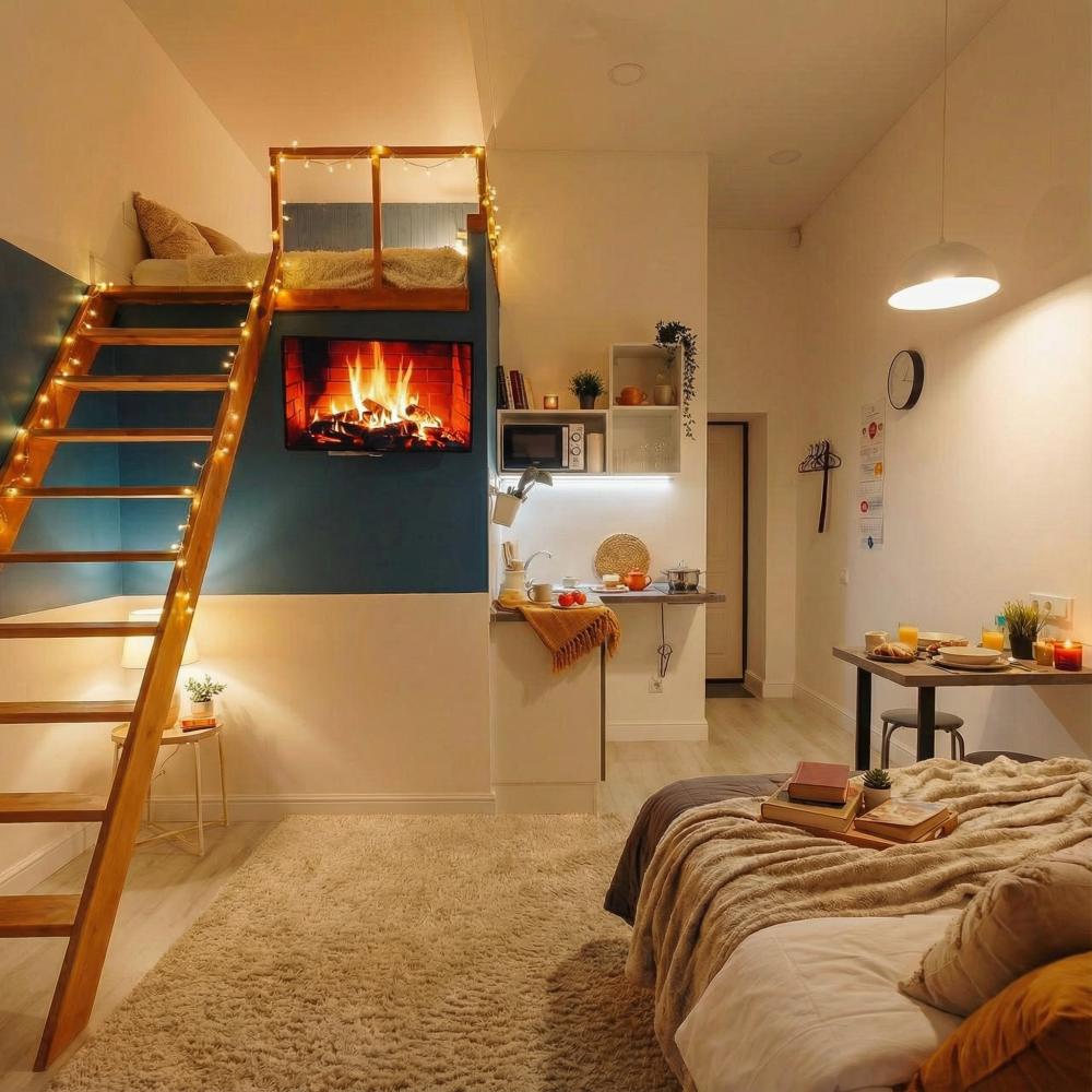 Комфортный однокомнатный двухуровневый номер. К услугам гостей две односпальные кровати, ванная комната с душевой кабиной, бесплатные гигиенические принадлежности, фен, высокоскоростной wi-fi, телевизор с плоским экраном, обеденная зона и кухонный уголок, оборудованный бытовой техникой, посудой и кухонной утварью.