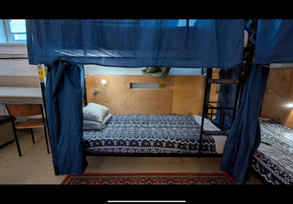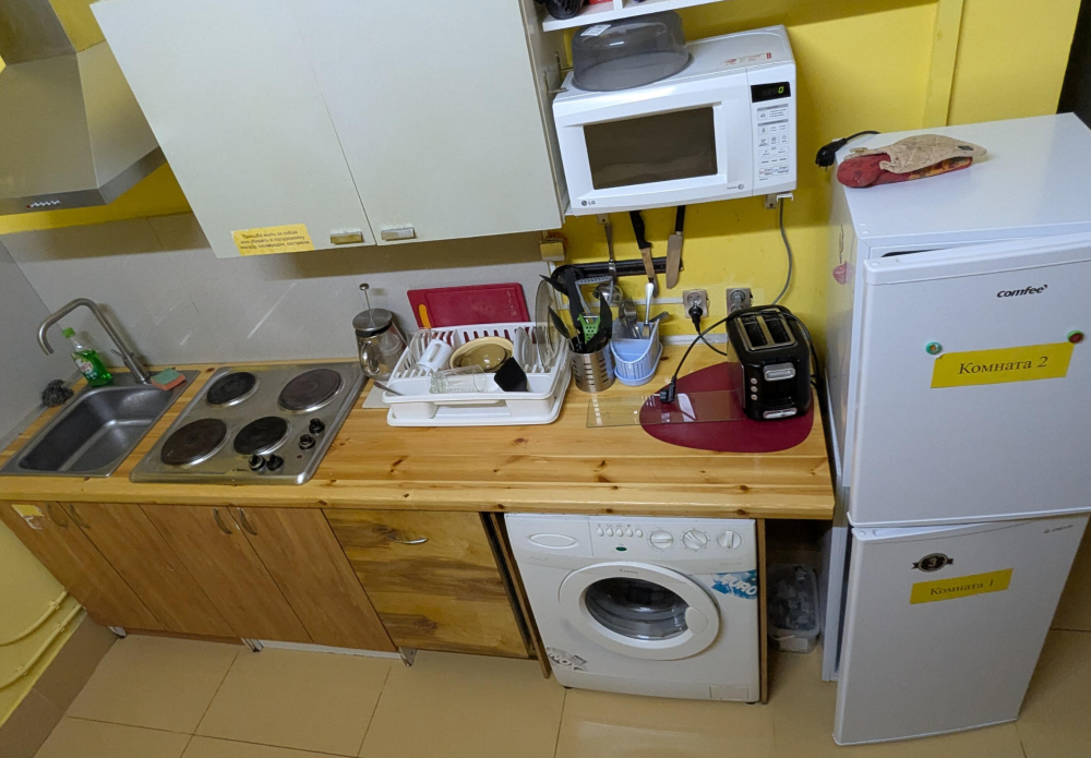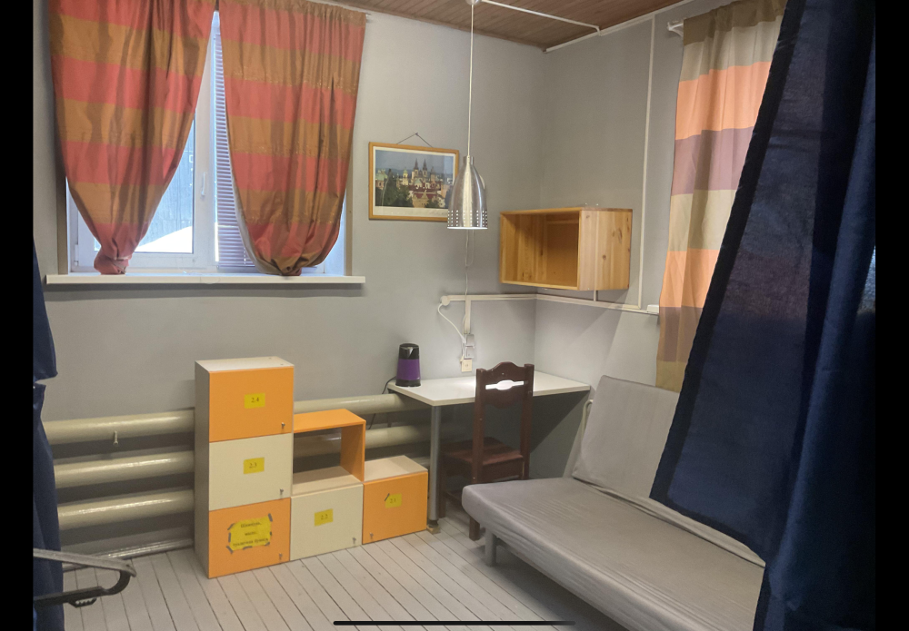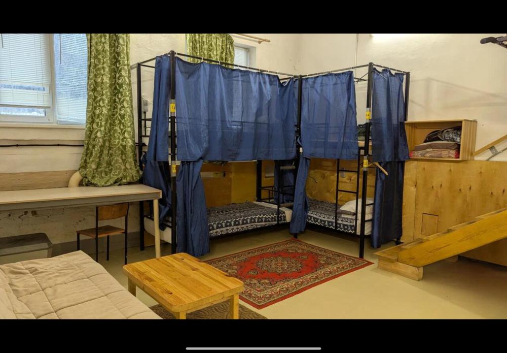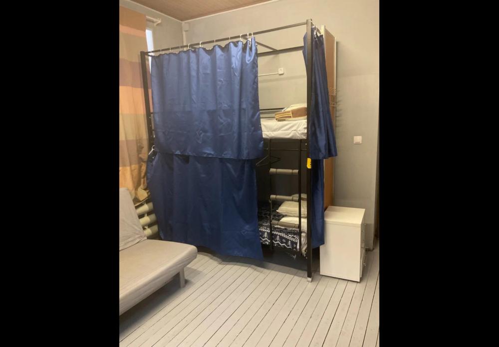 В номере: 2 двухъярусные кровати и 1 доп. место - диван.двуспальный Удобства общие.